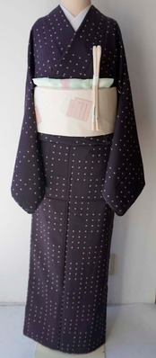 京都西陣・陣屋の本場大島紬、似せ紫色地に