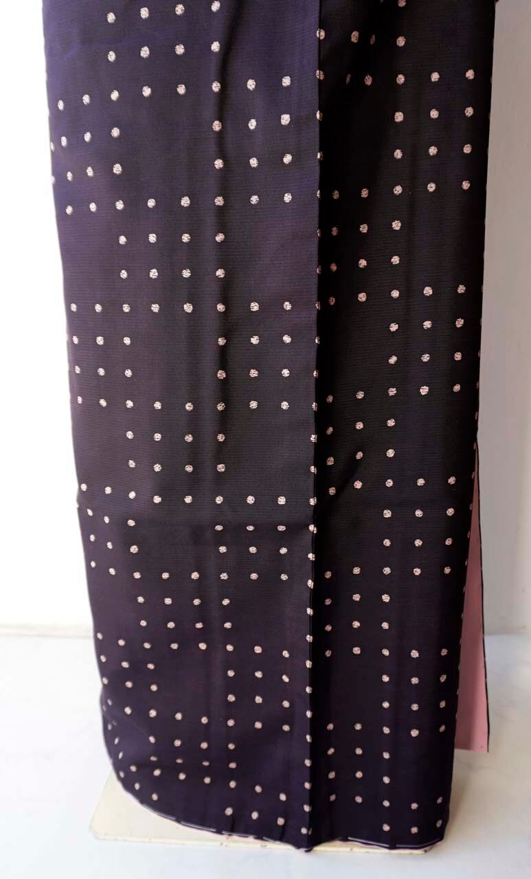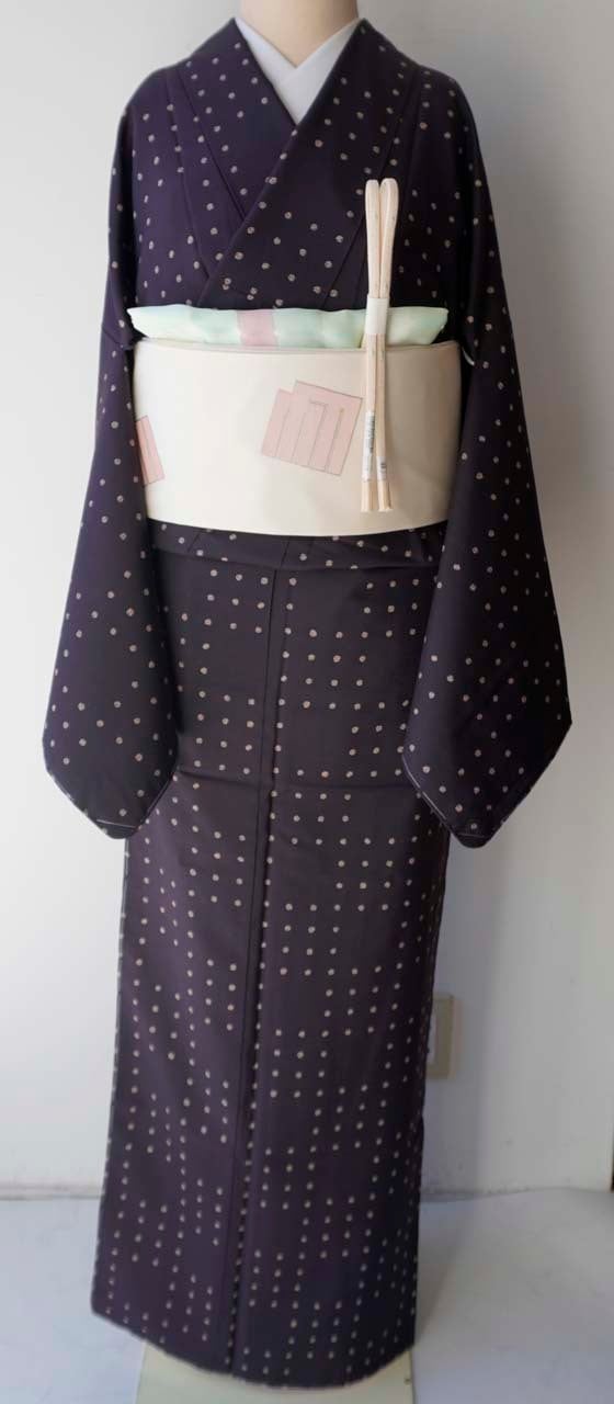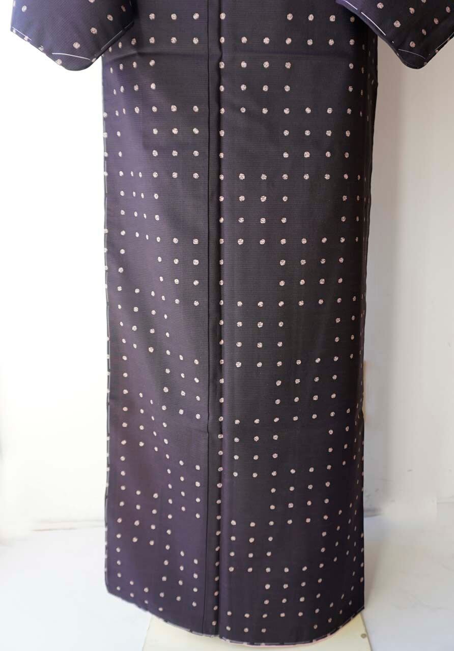 【袷】西陣・陣屋 似せ紫色地 ドット市松文 本場大島紬 証紙付き
