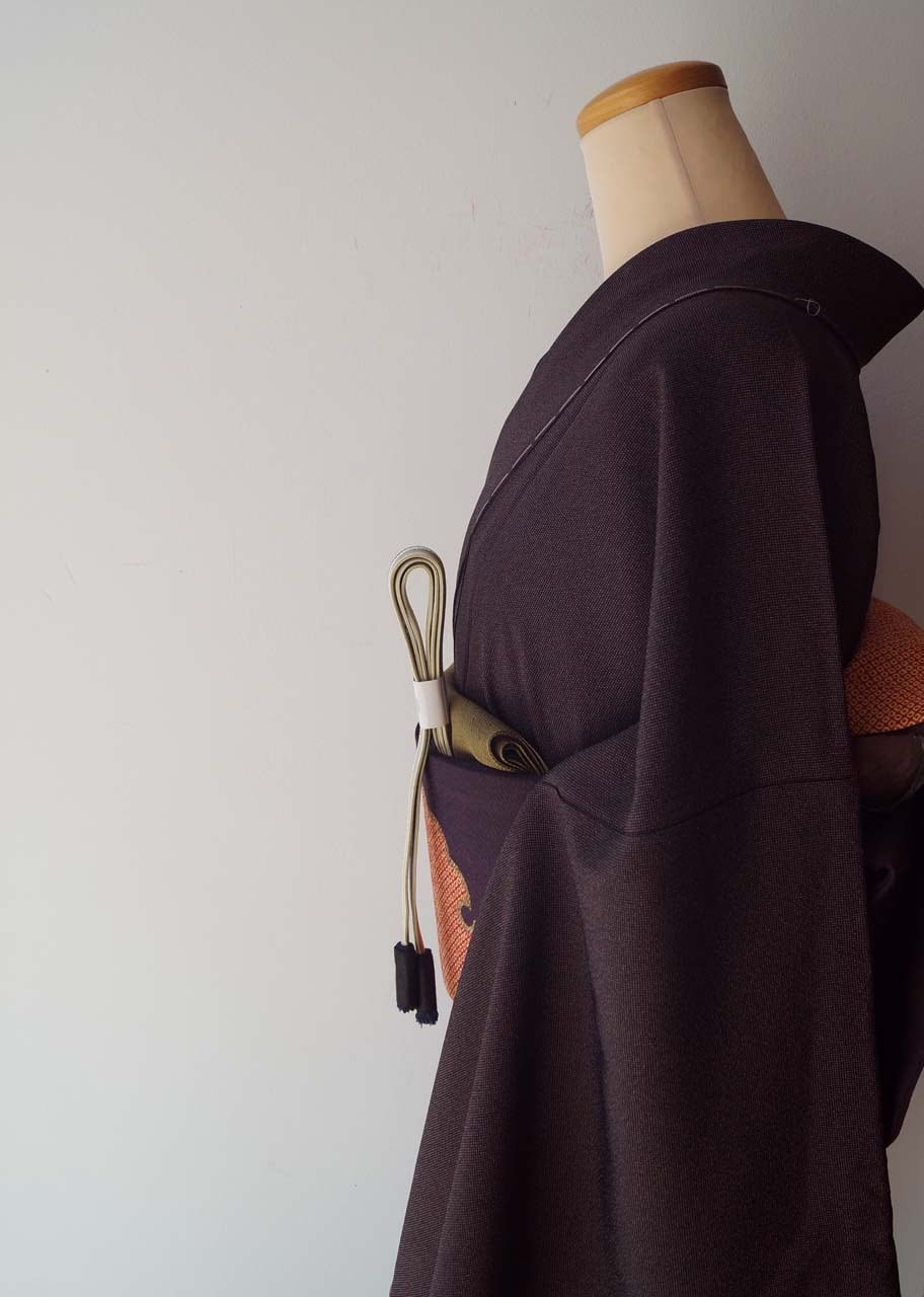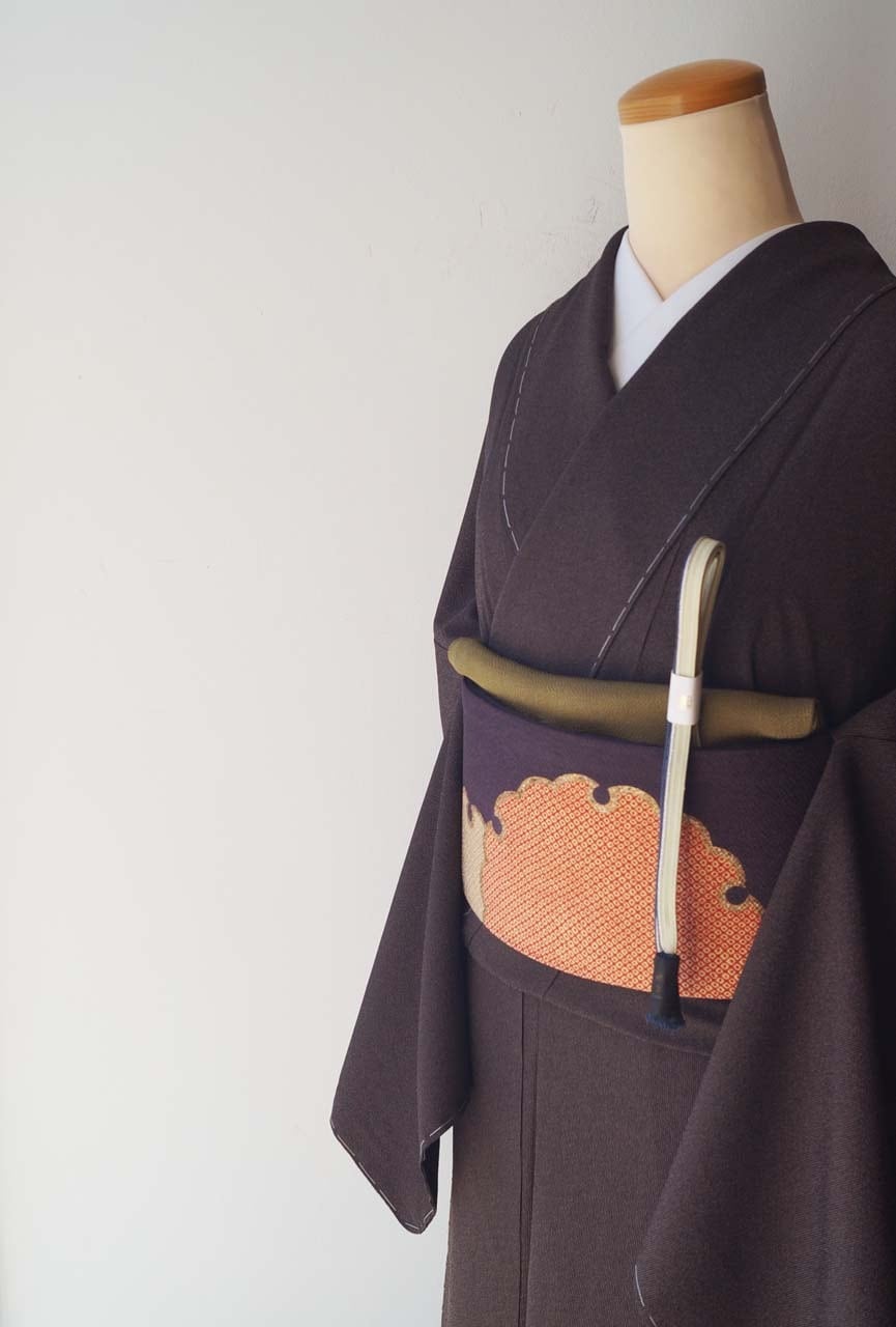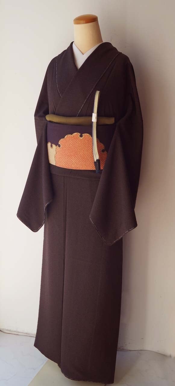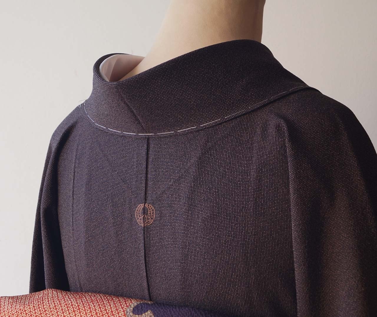 【袷】憲法染色×丁子茶色 江戸小紋 角通し 一つ紋 トール&ゆとりサイズ