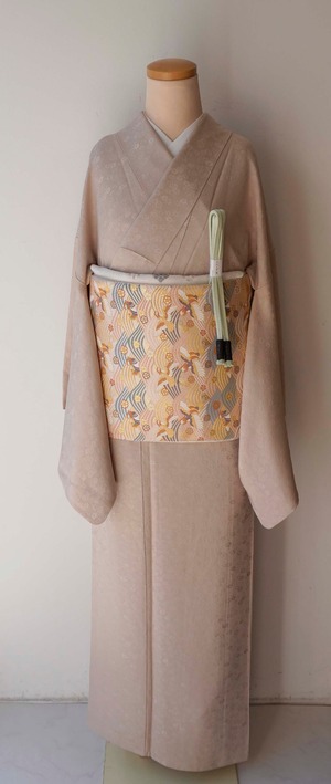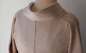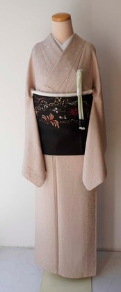 灰味がかった淡い桃色系の色無地です。