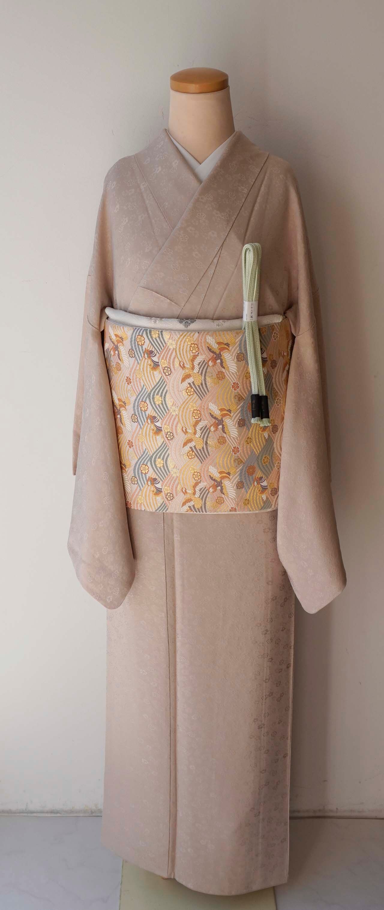 【袷】灰梅地 桜地紋 色無地