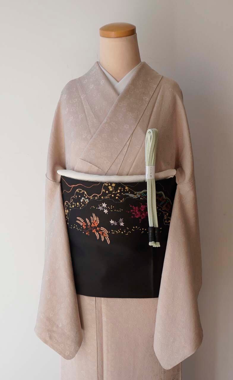 黒地の帯は全体を引き締め、