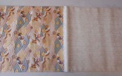 淡く灰味がかった桃色、青、緑系の優しいお色使いが