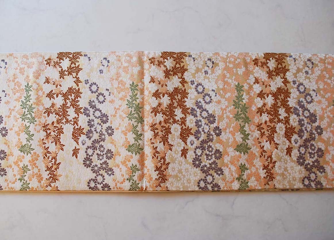 【ふくろ帯】西陣製 四季花横段文 有職唐織ふくろ帯