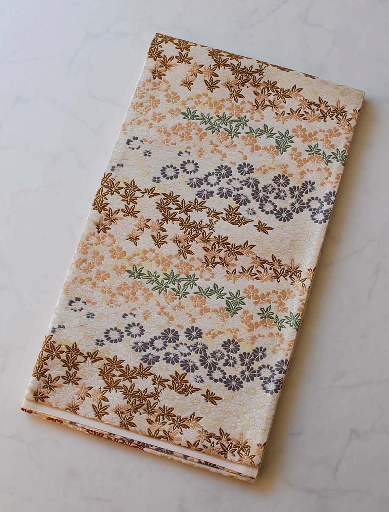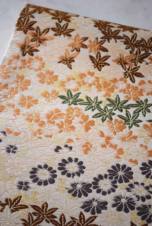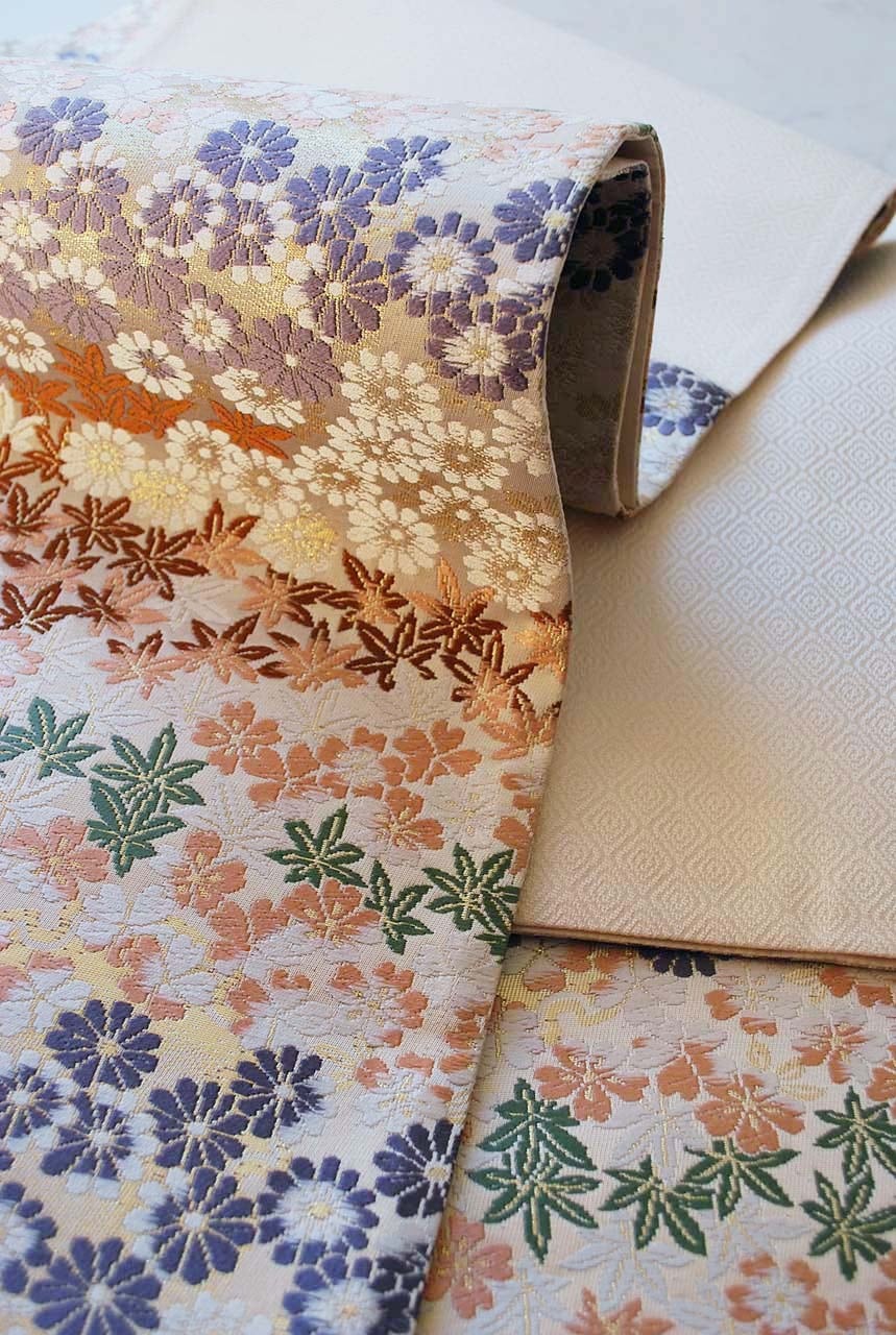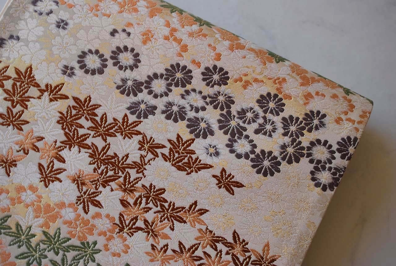 オフホワイト地に小さな紅葉、菊、桜。