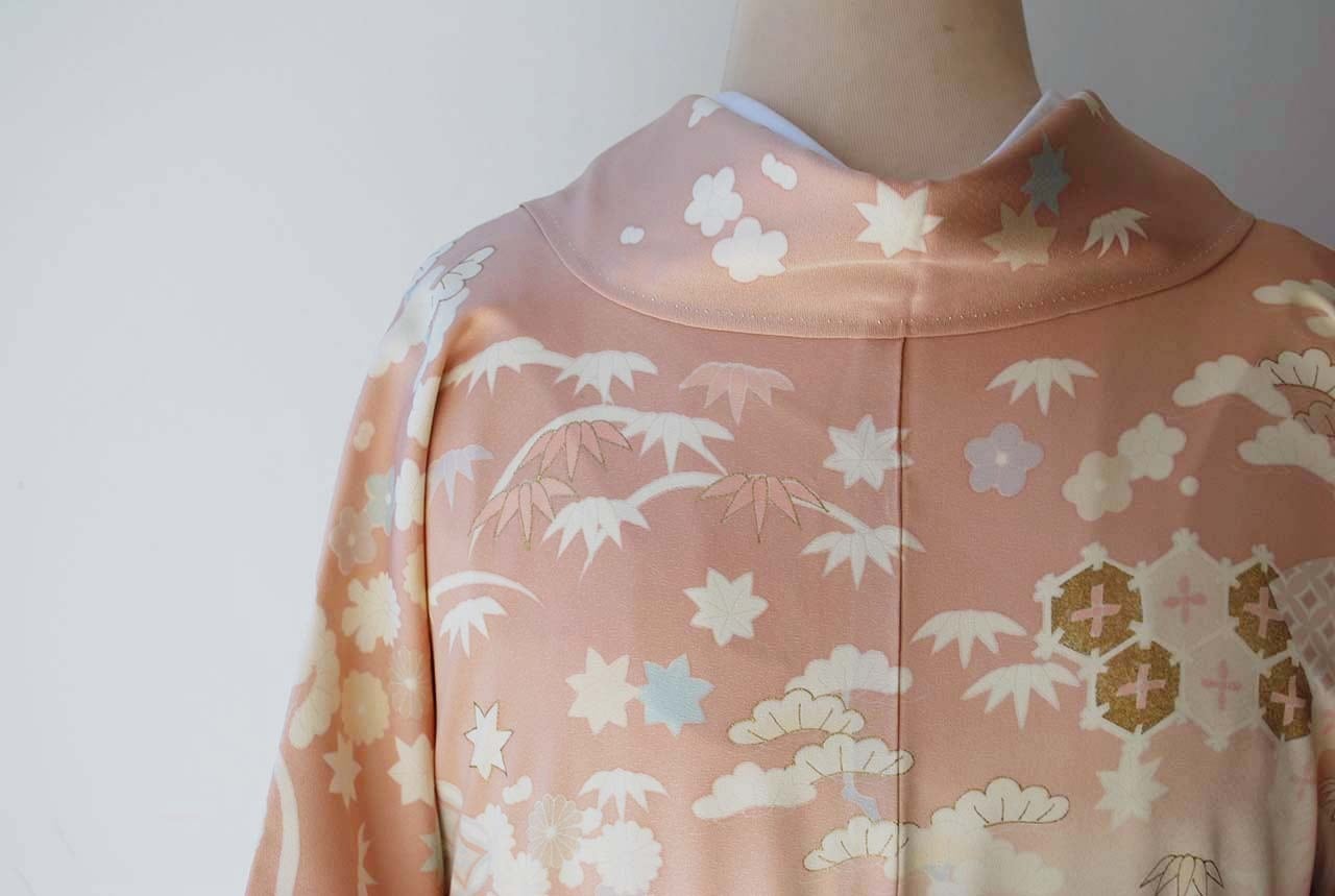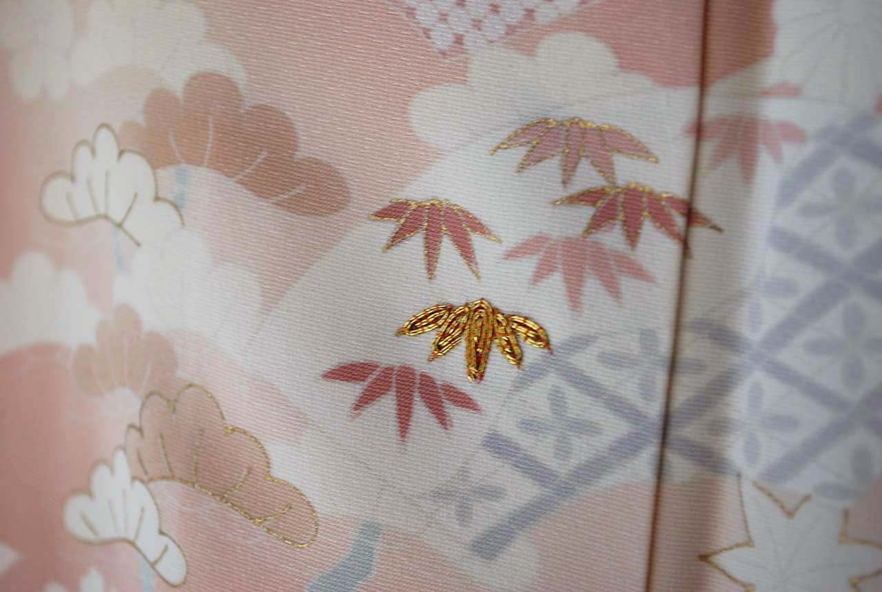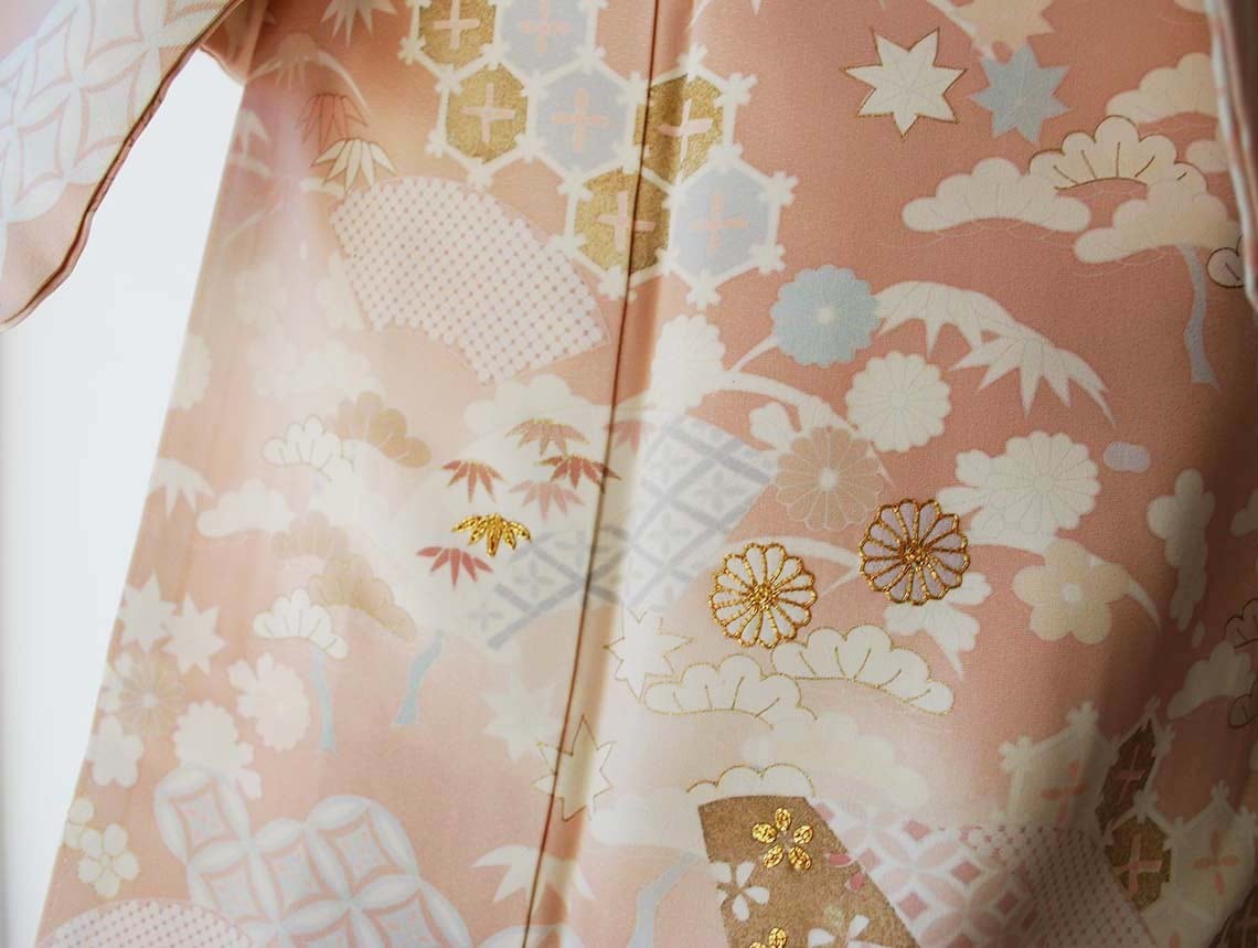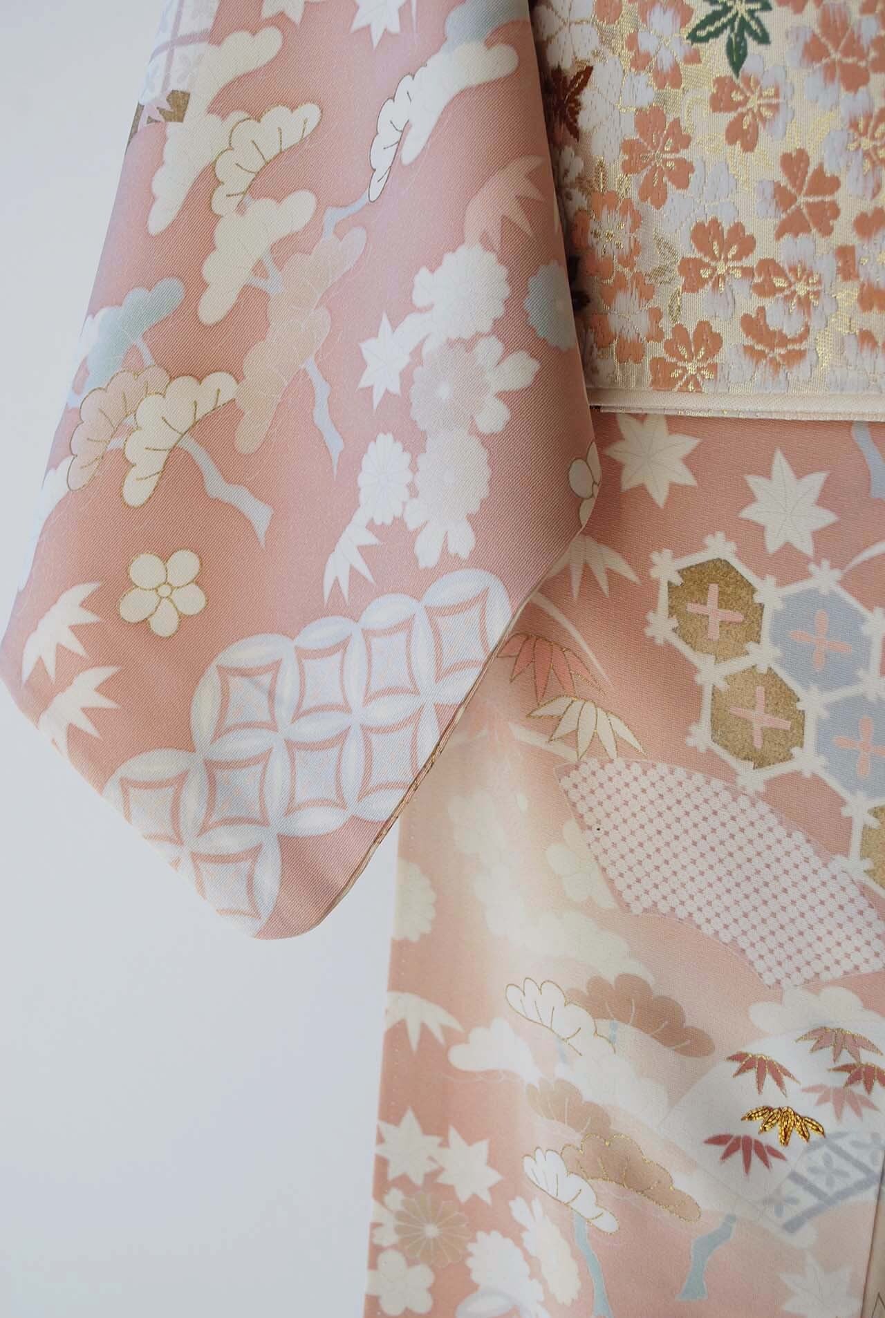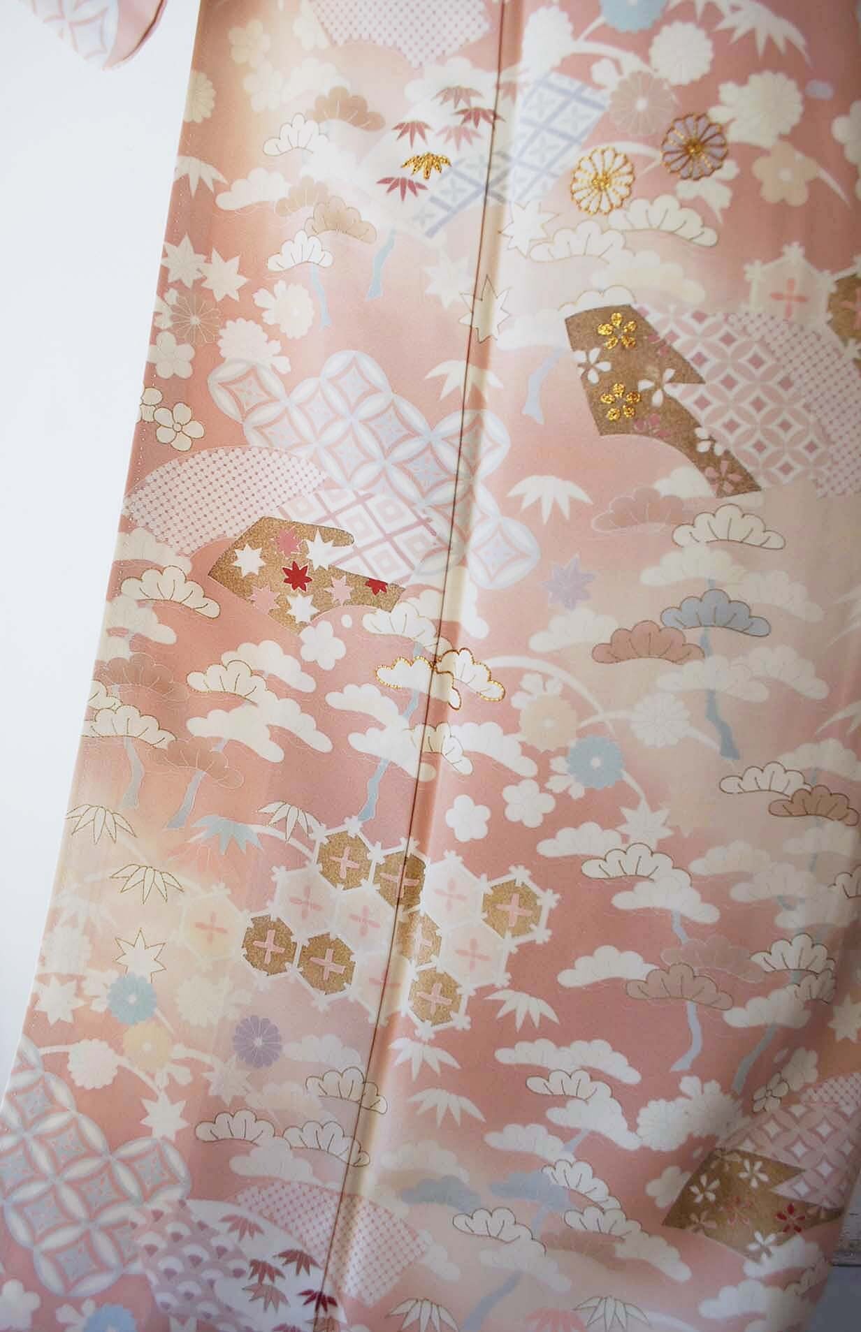 描かれているのは、松竹梅に菊、亀甲、扇面、七宝繋ぎ。