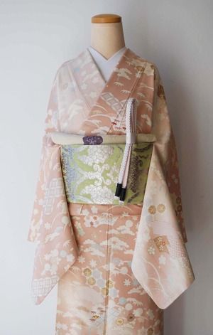 【袷】灰桜色地 四季花文 友禅訪問着