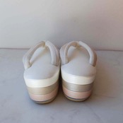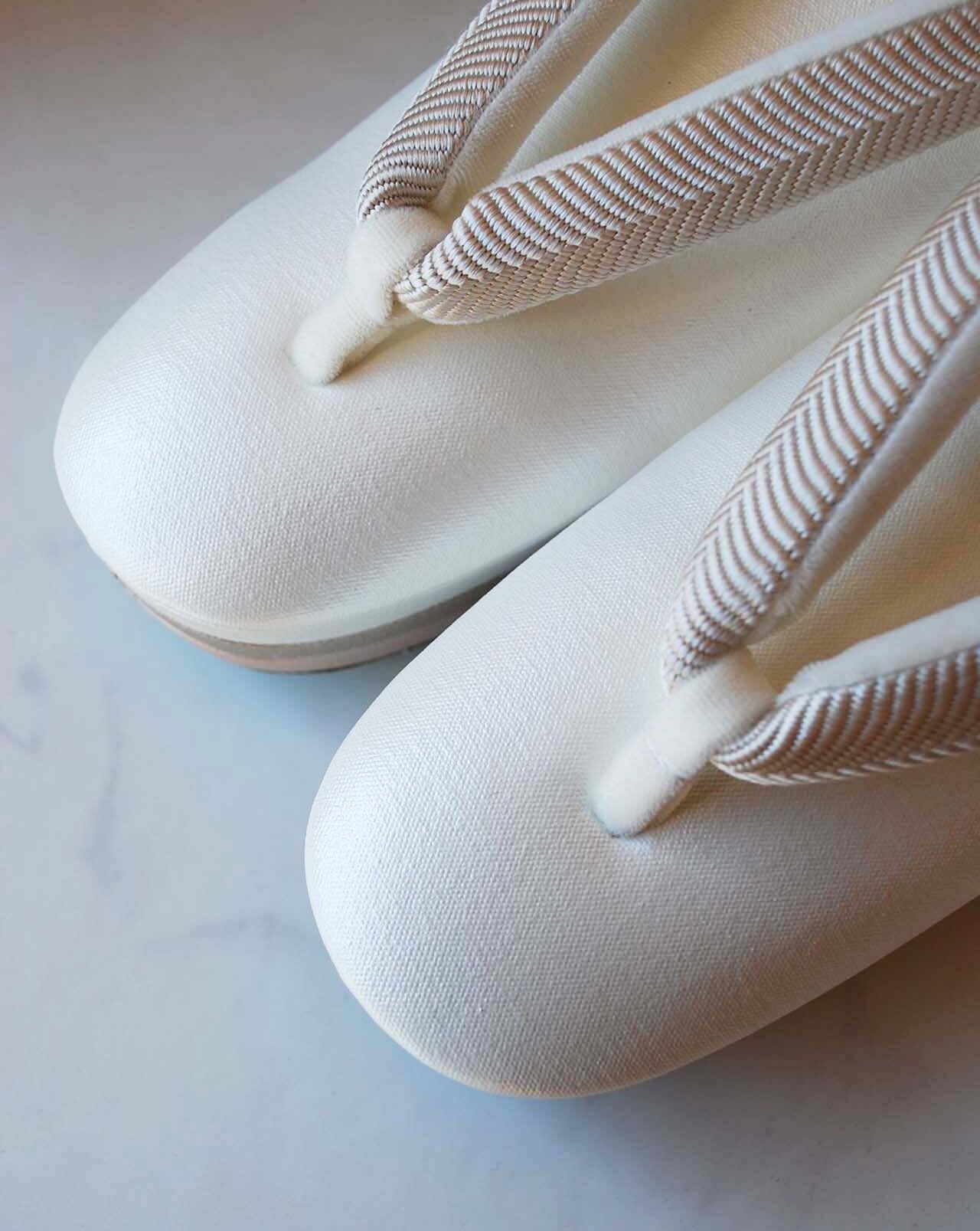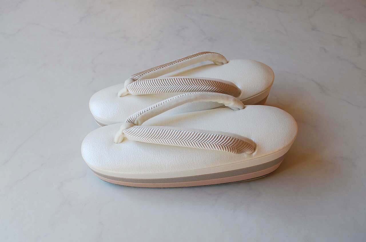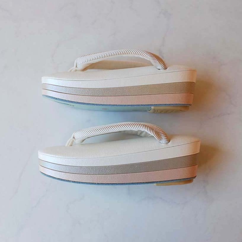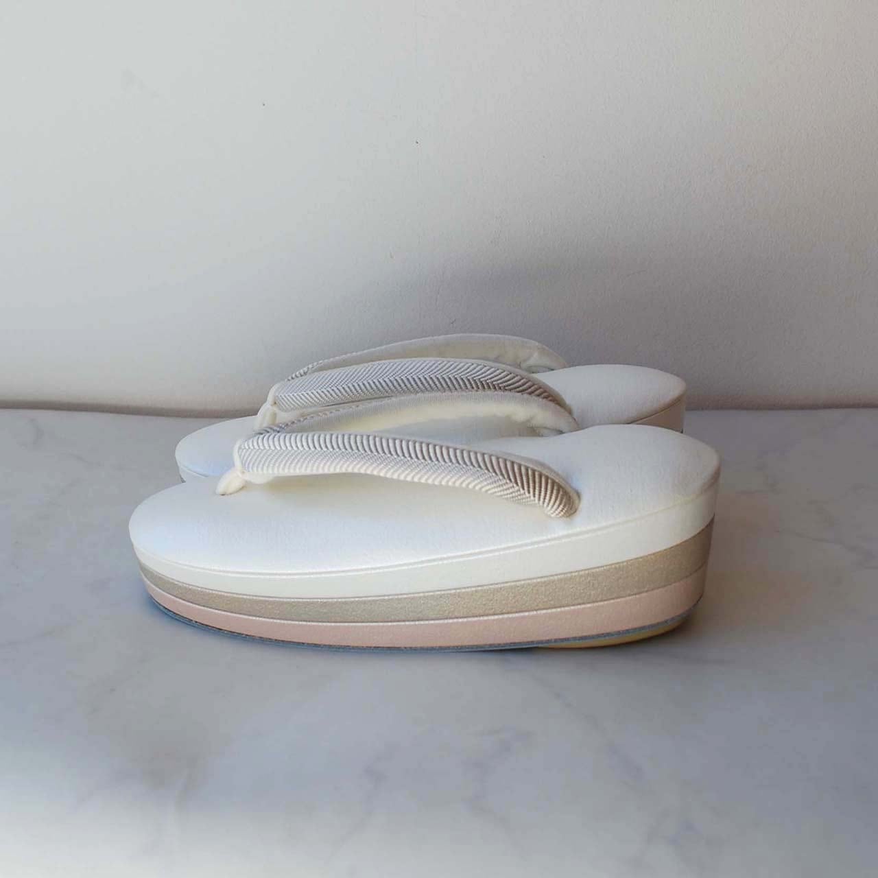 【和小物さくら】真珠色・グレージュ・薄桜色台×白綾織花緒 三段真綿草履 即納品