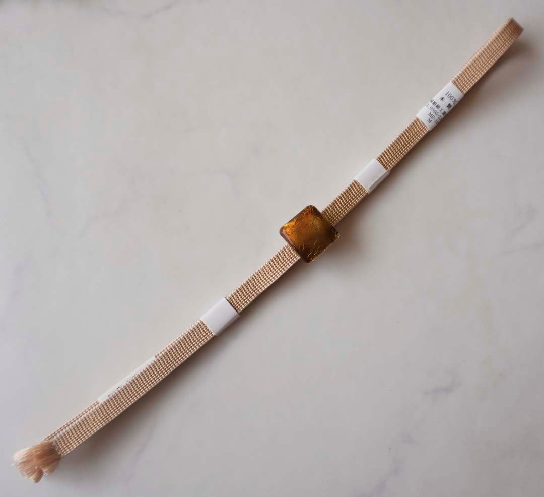 【帯締め】ガラス帯留め付き 飴色×生成り色 三部紐 251120⑯