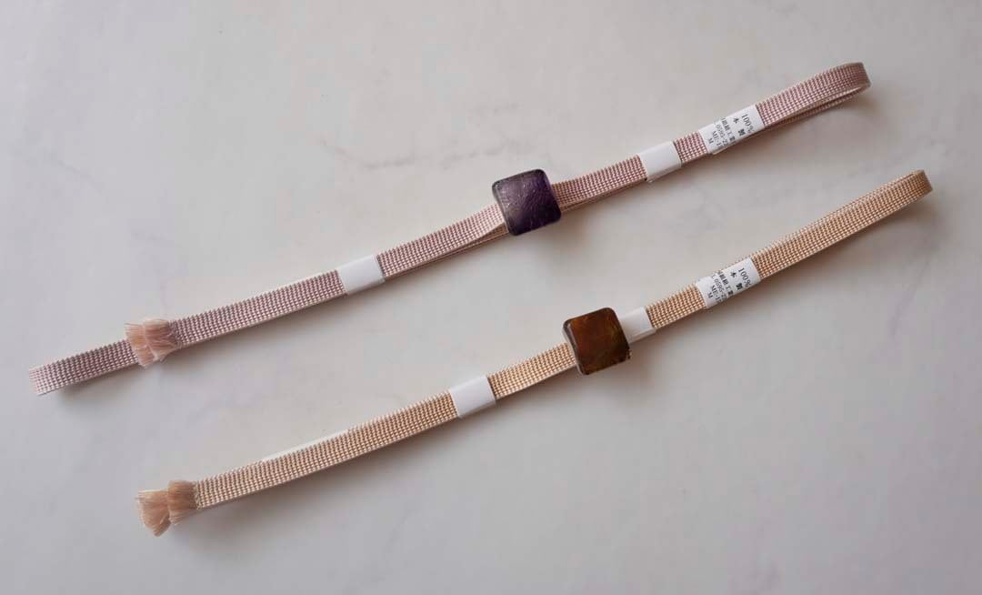 こちらは黄系のお色のガラスの帯留めが付属しております。