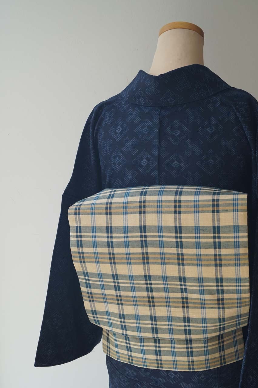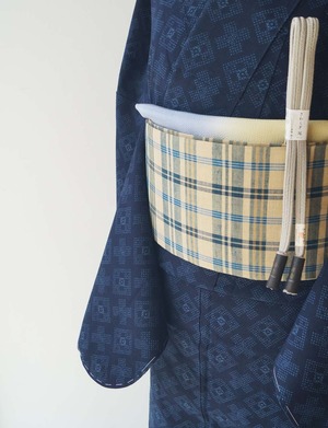 白橡色格子文様なごや帯です。