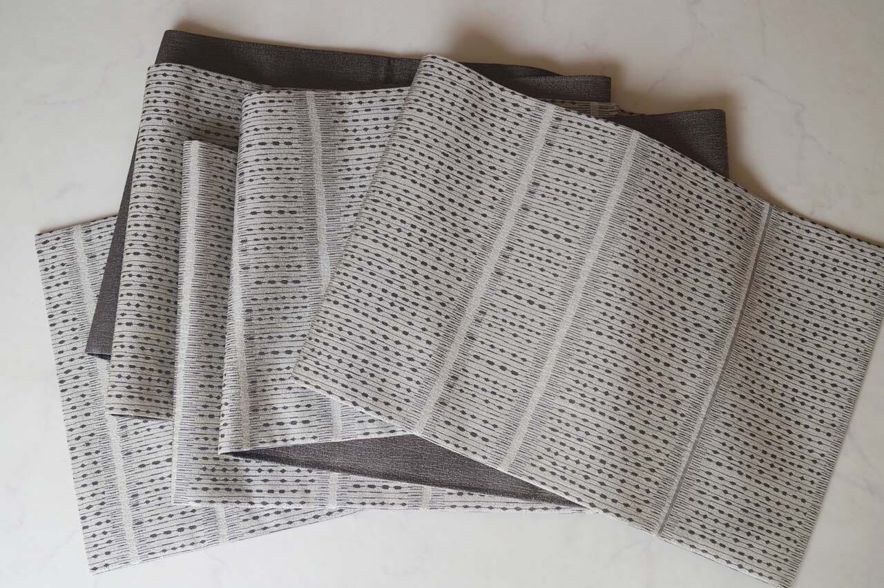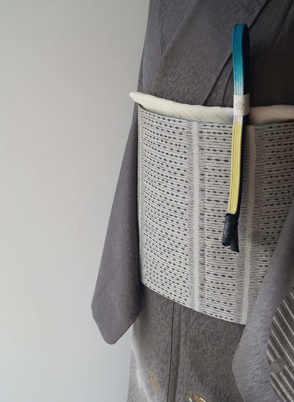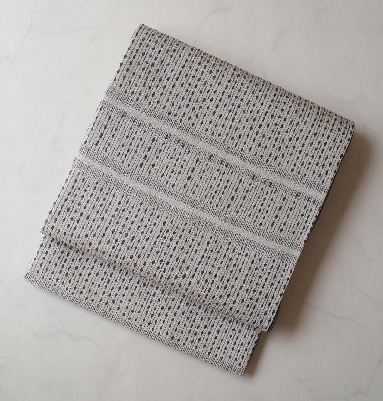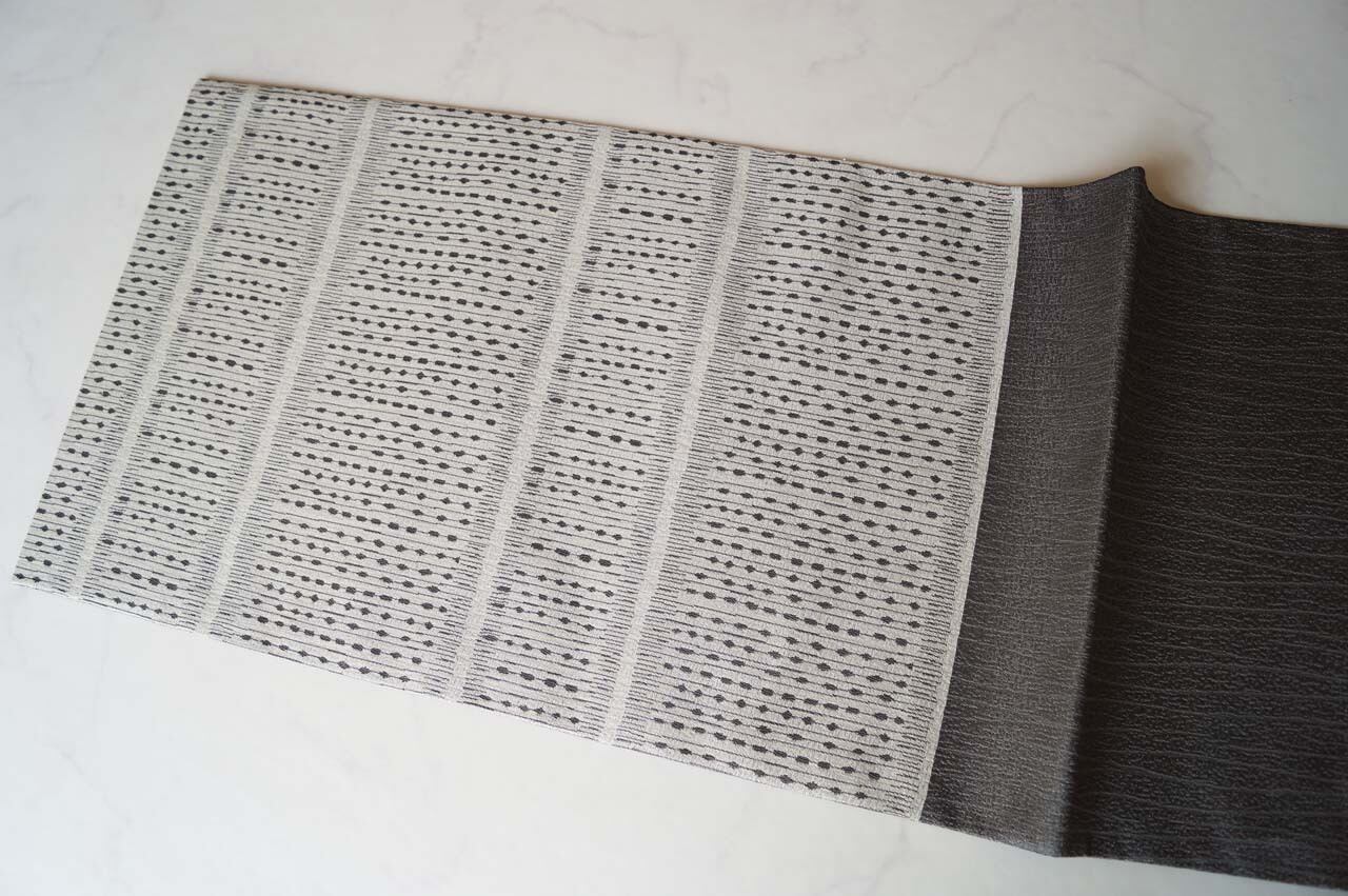 【ふくろ帯】蝋色×白練色 ドットストライプ横段 洒落ふくろ帯 リバーシブル仕様