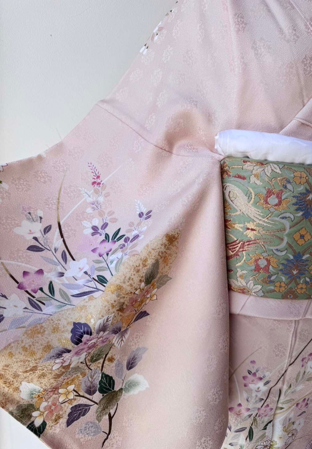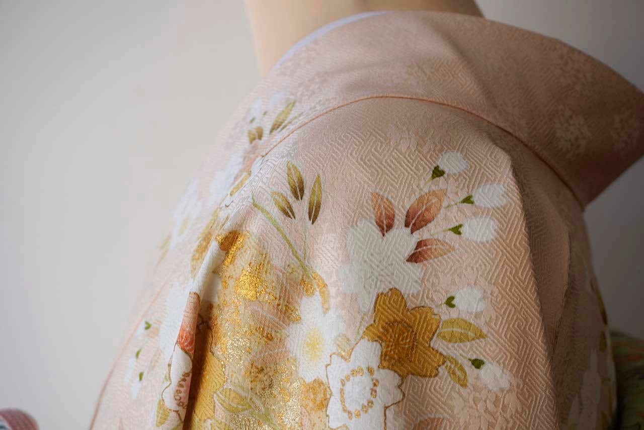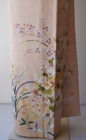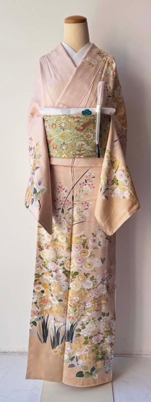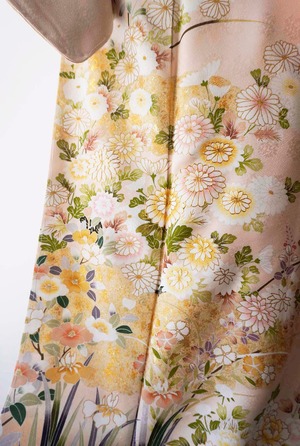 【袷】薄桜色地 金彩雲取り四季花文 訪問着