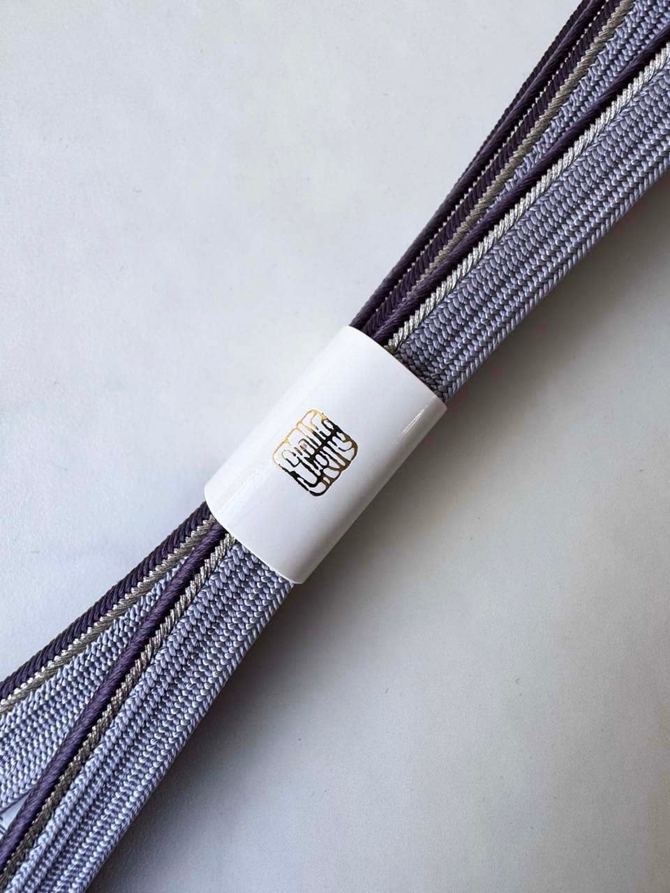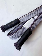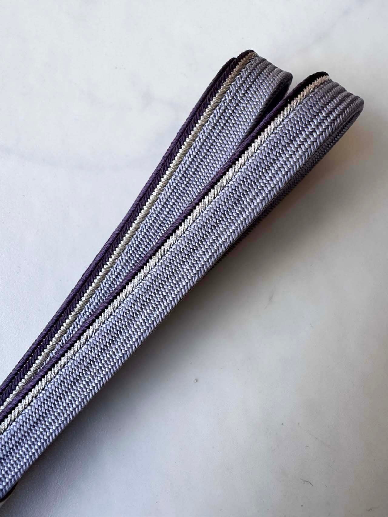 片側に銀糸と滅紫のアクセント
