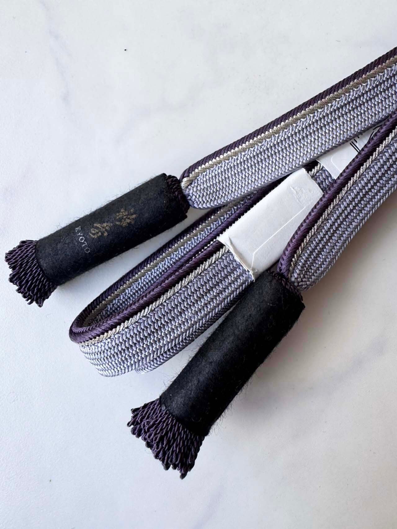 【衿秀・帯締め】藤鼠×滅紫×銀 肩耳高麗組 撚り房帯締め 20251216㉛