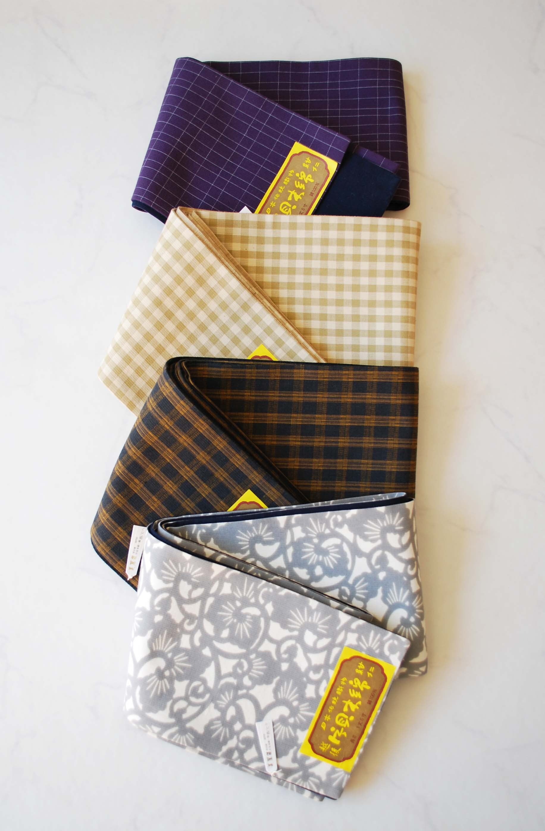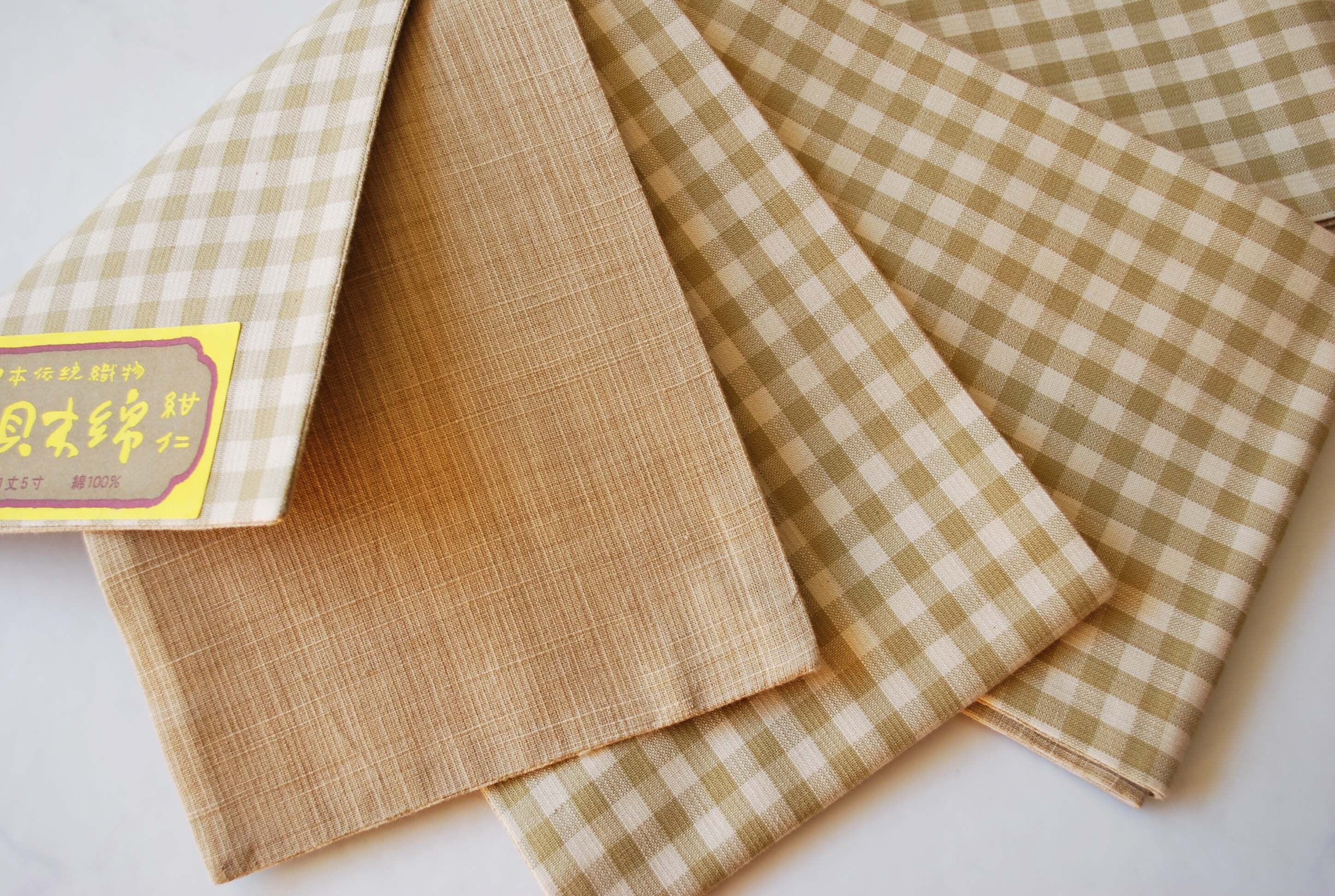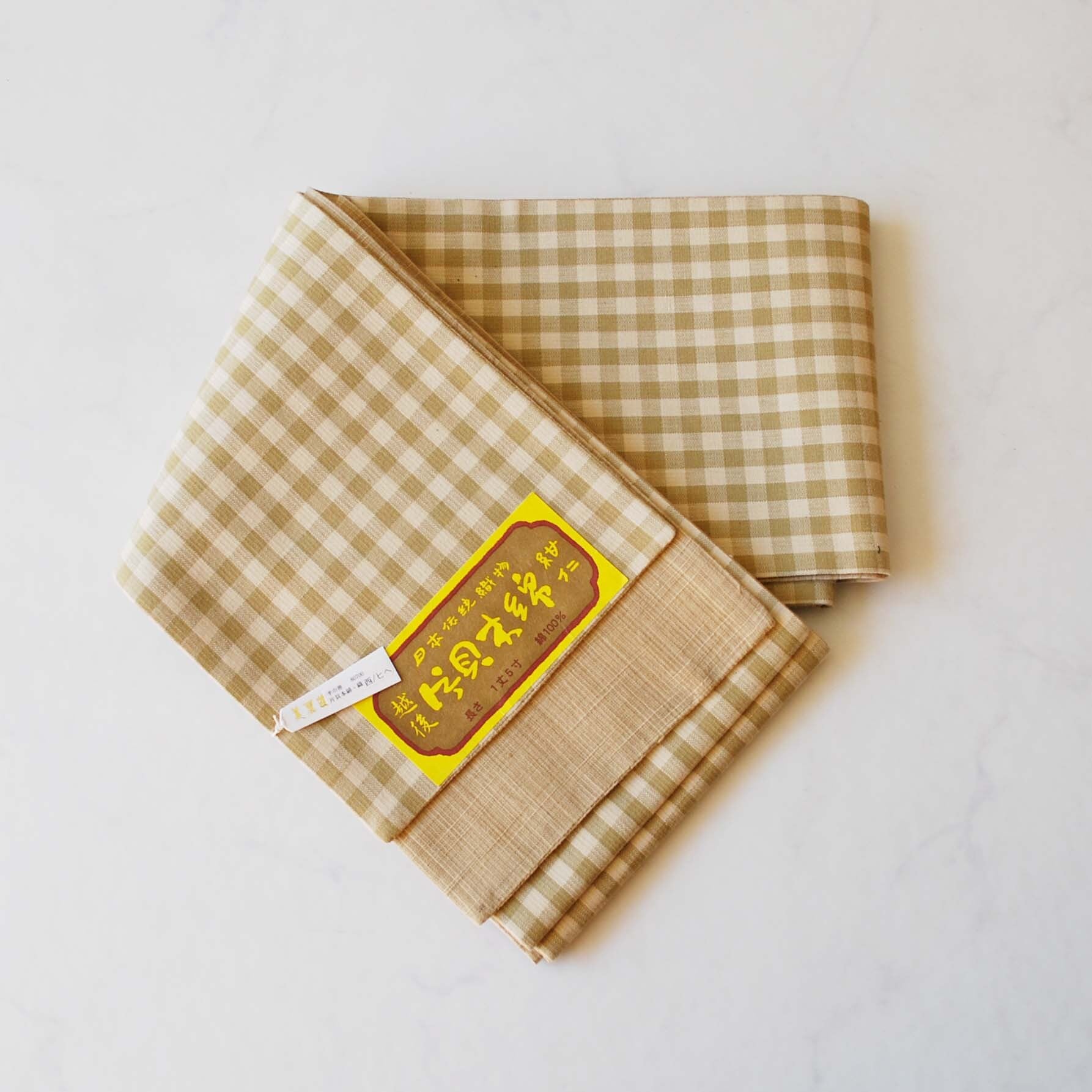 【半幅帯】紺仁・片貝木綿 蒲葡×菜種油 格子柄半幅帯