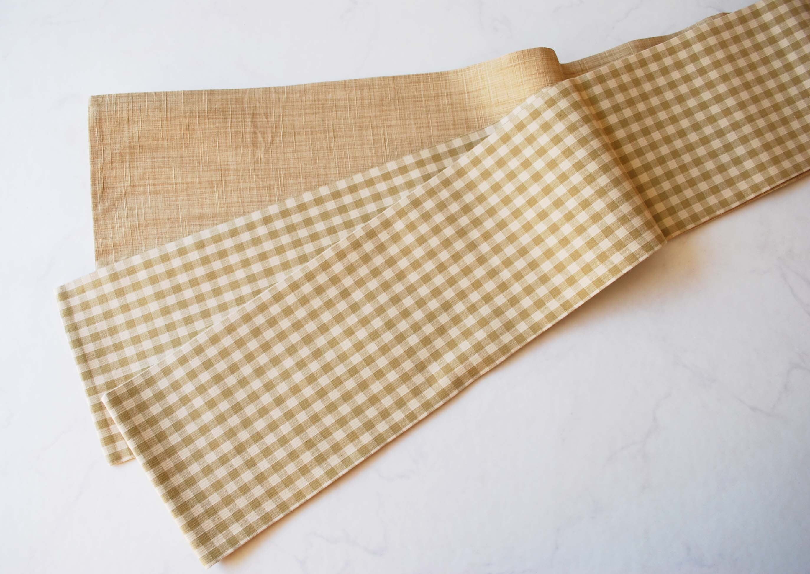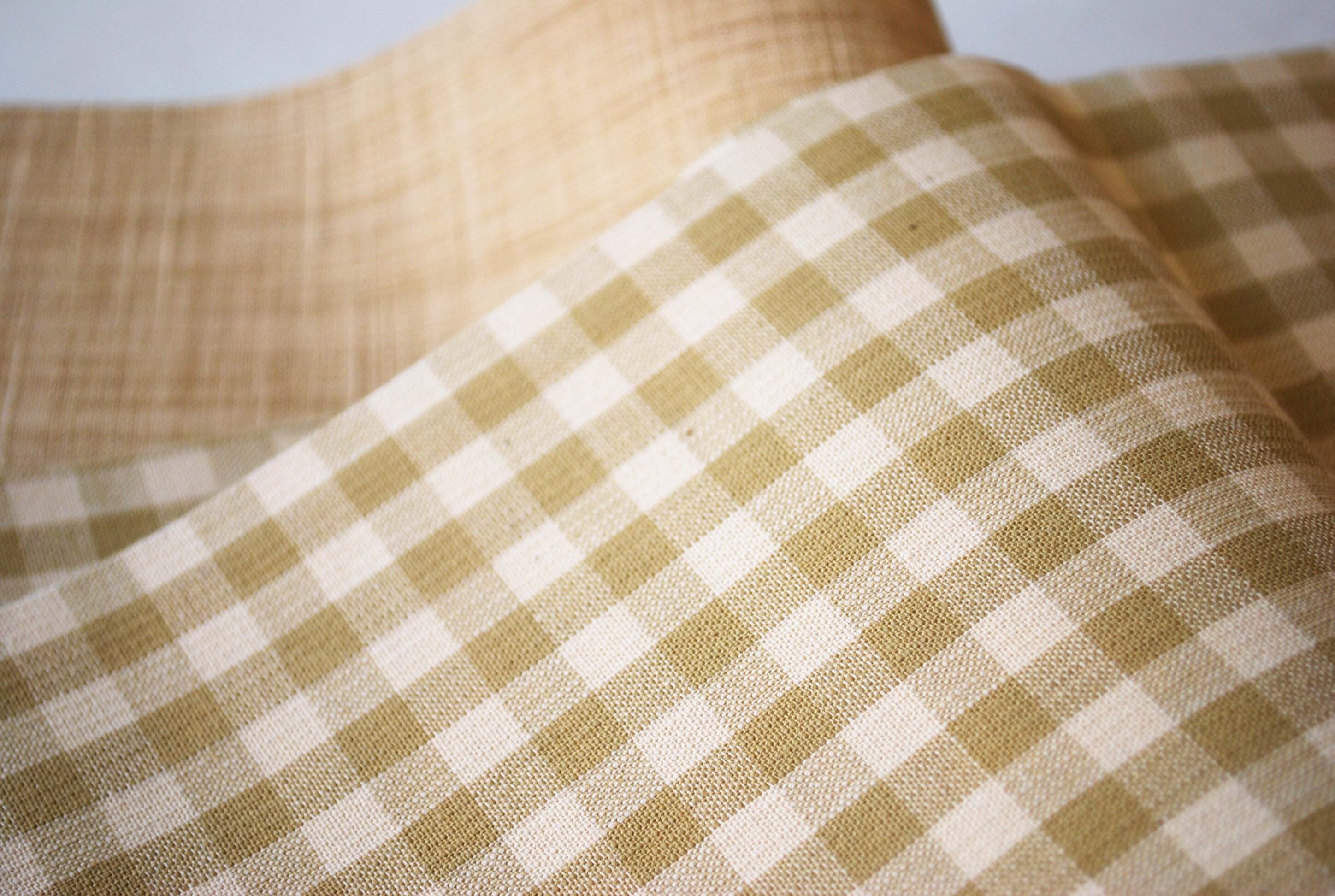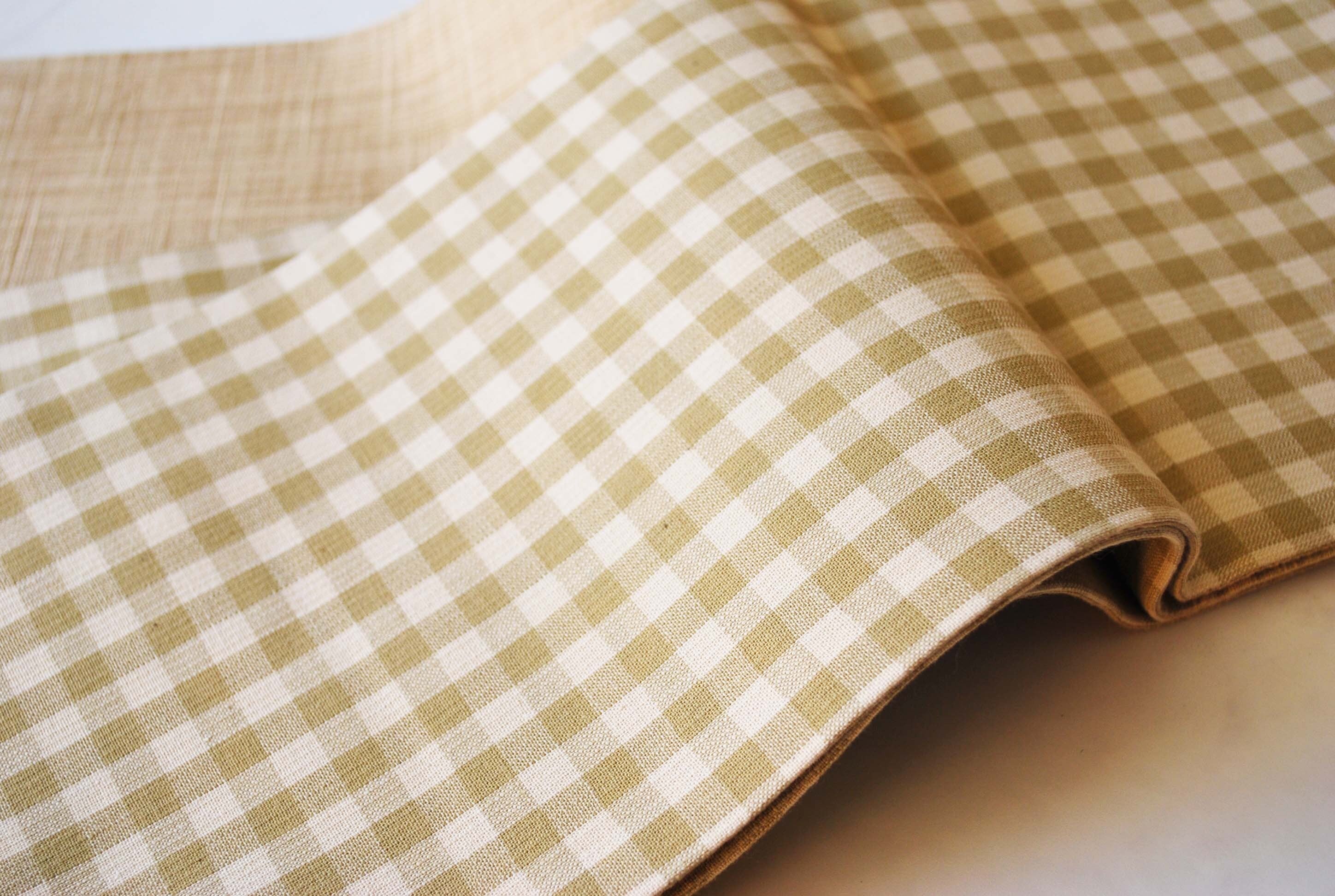 【半幅帯】紺仁・片貝木綿 蒲葡×菜種油 格子柄半幅帯