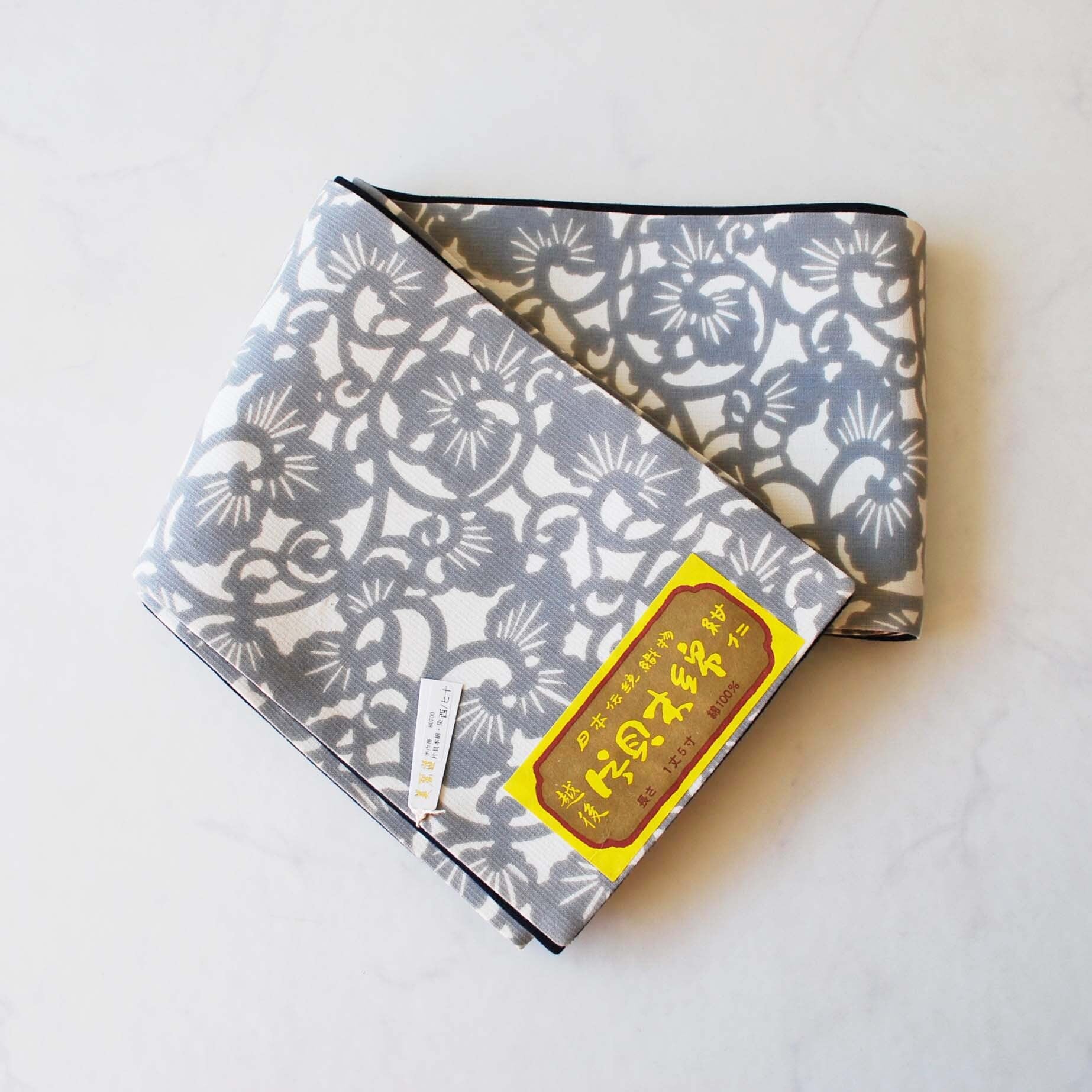 越後片貝木綿、紺仁製半幅帯です。