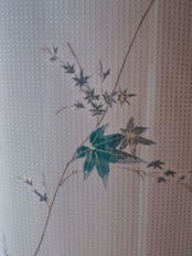 グレーをベースに、しっとりと落ち着いた青緑の紅葉が