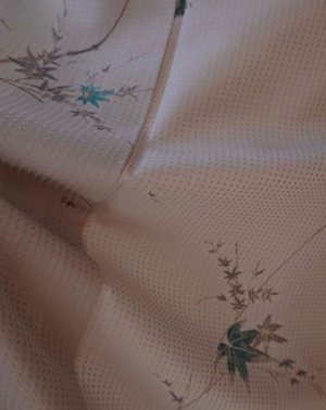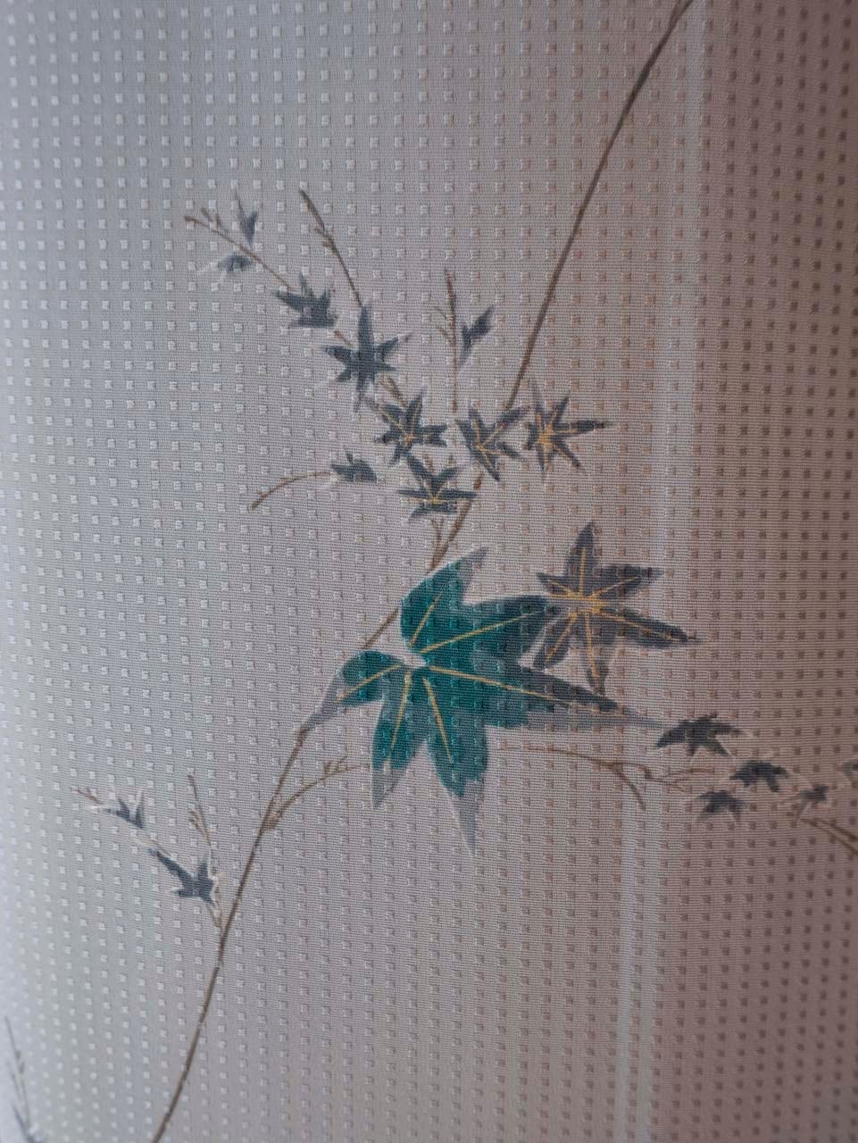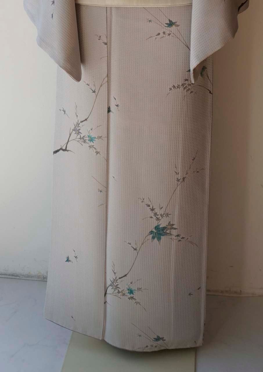 【袷】白鼠地 青紅葉文 小紋