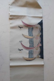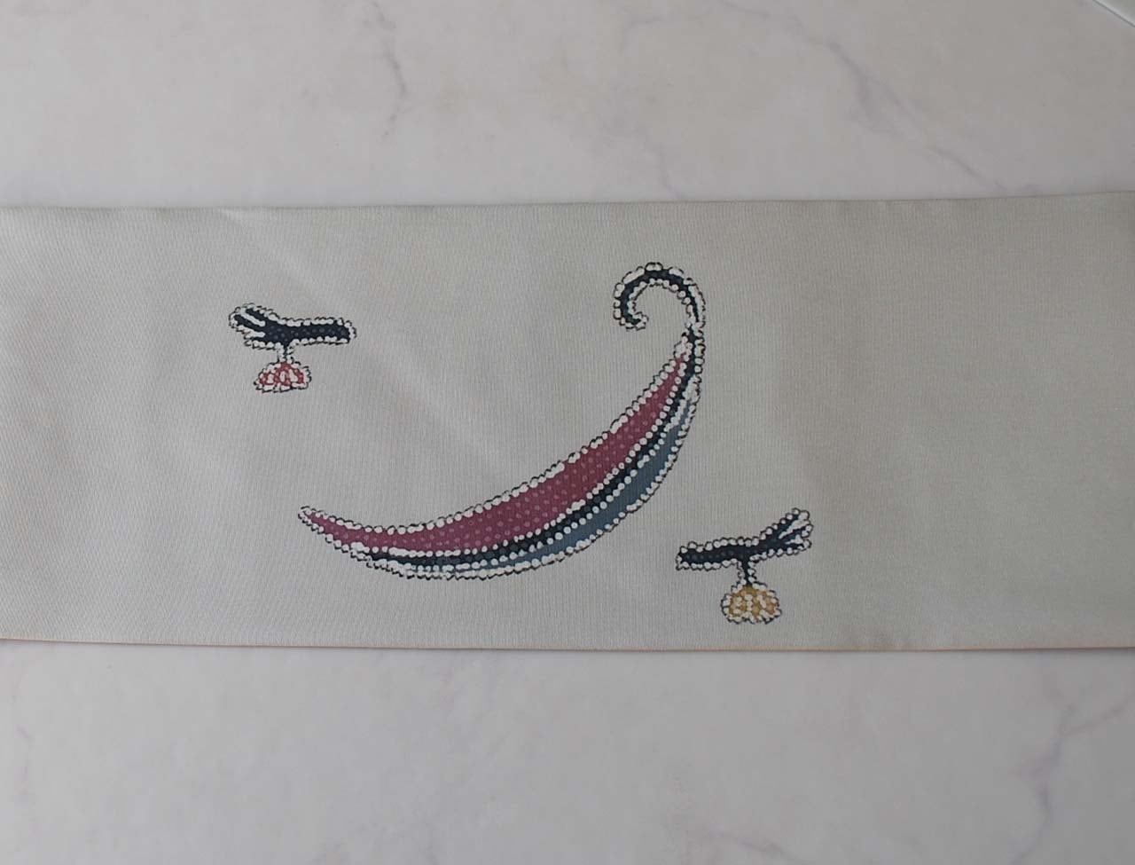 絹鼠色に抽象柄の塩瀬なごや帯です。