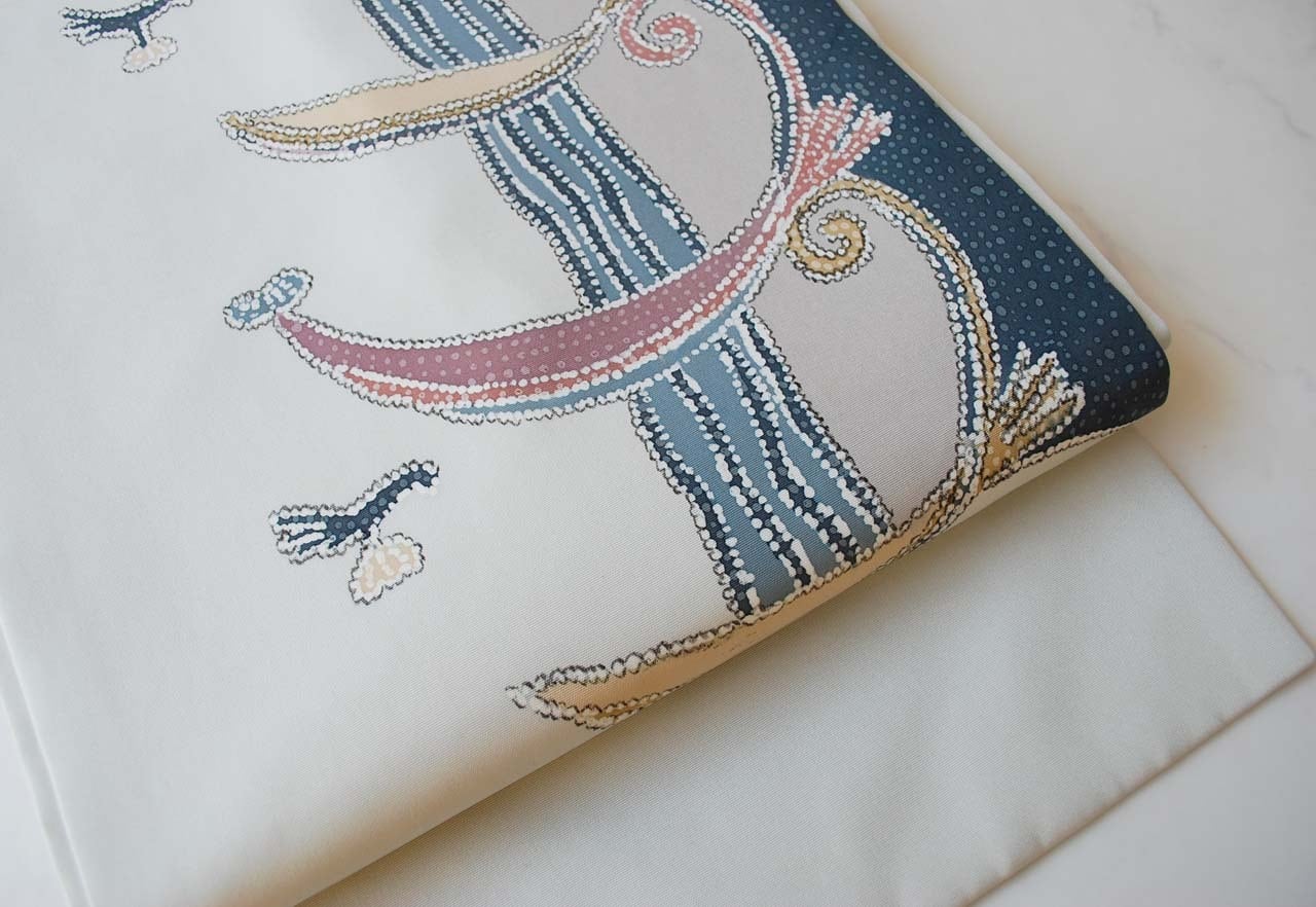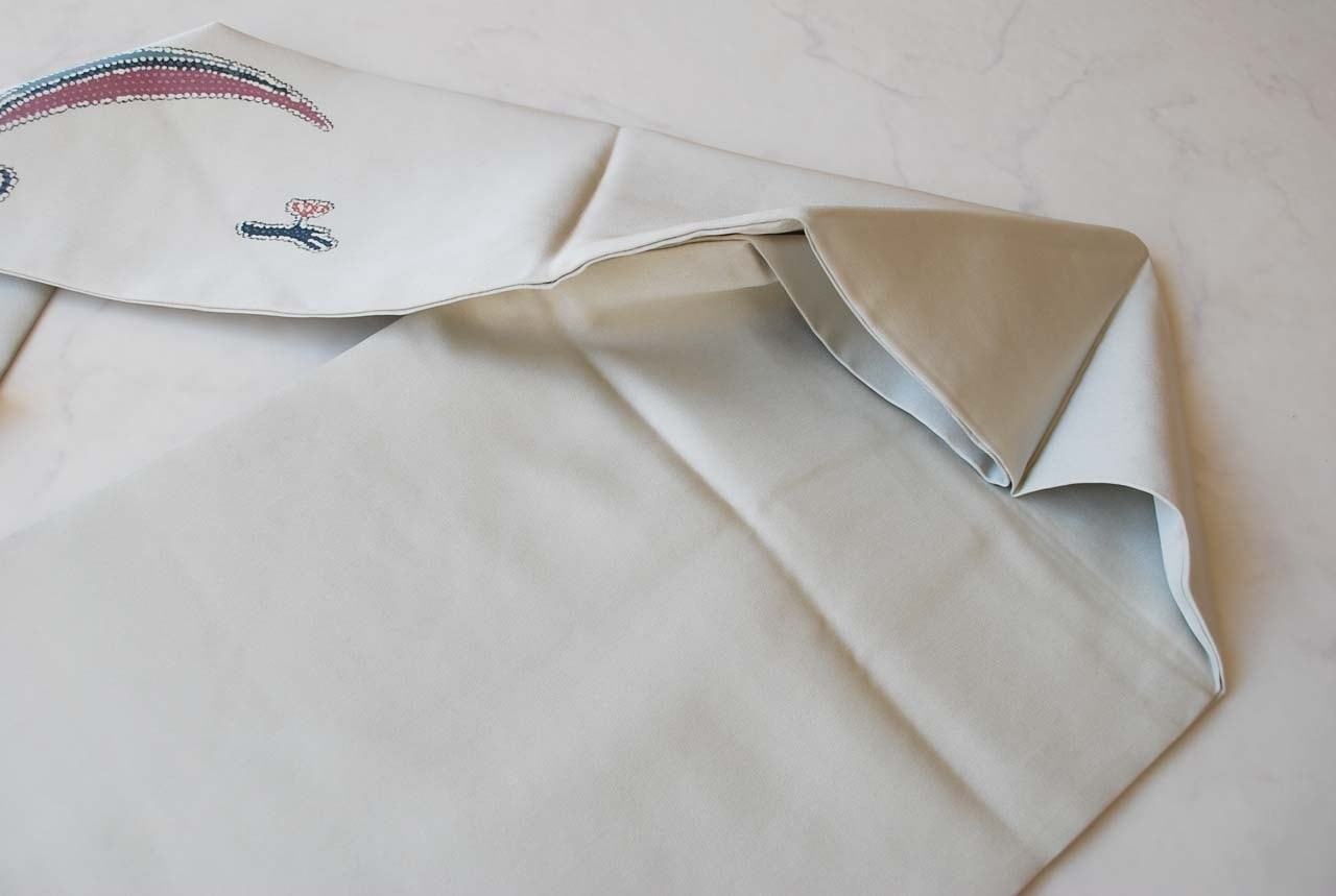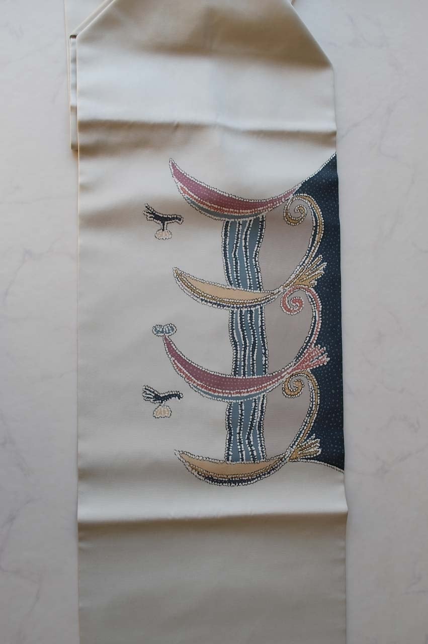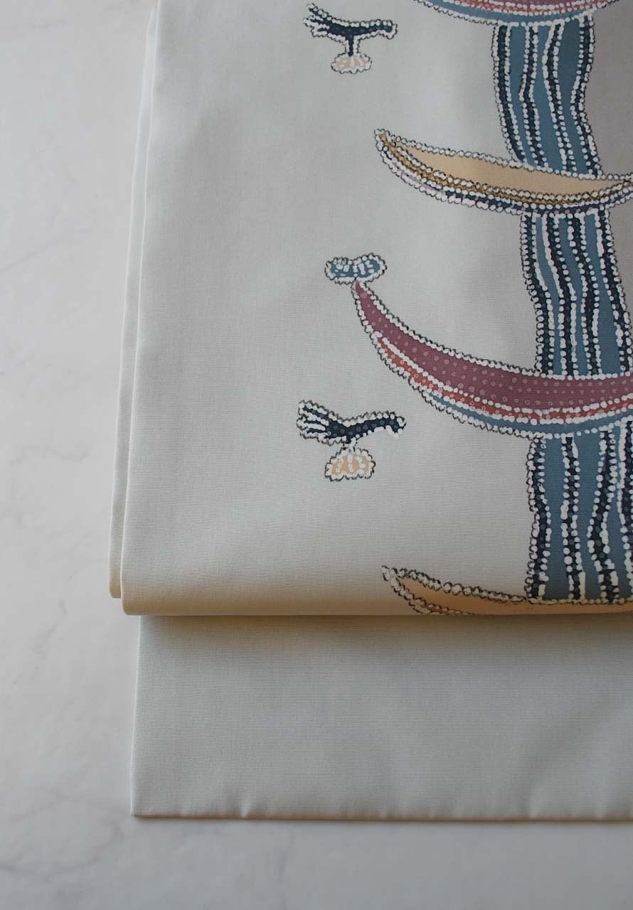 【なごや帯】絹鼠色 抽象柄 塩瀬なごや帯