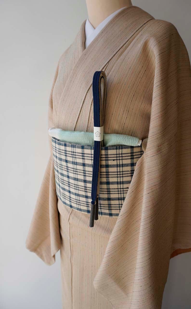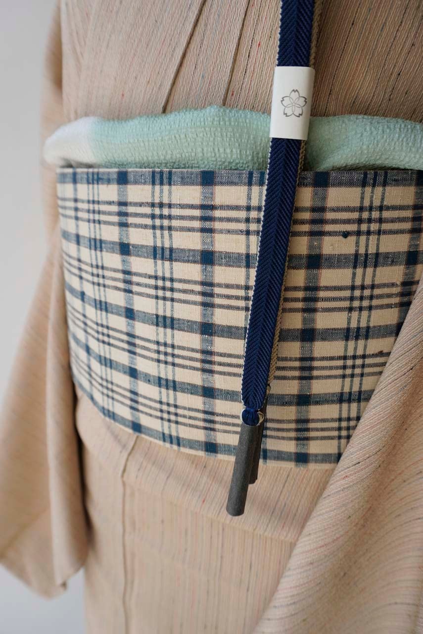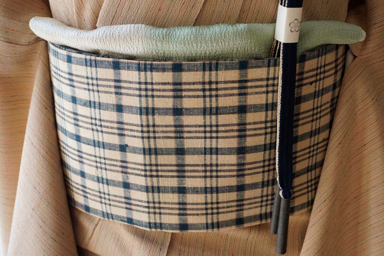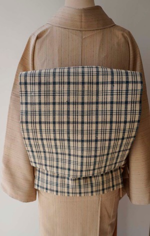 砂色地に格子文様のなごや帯です。