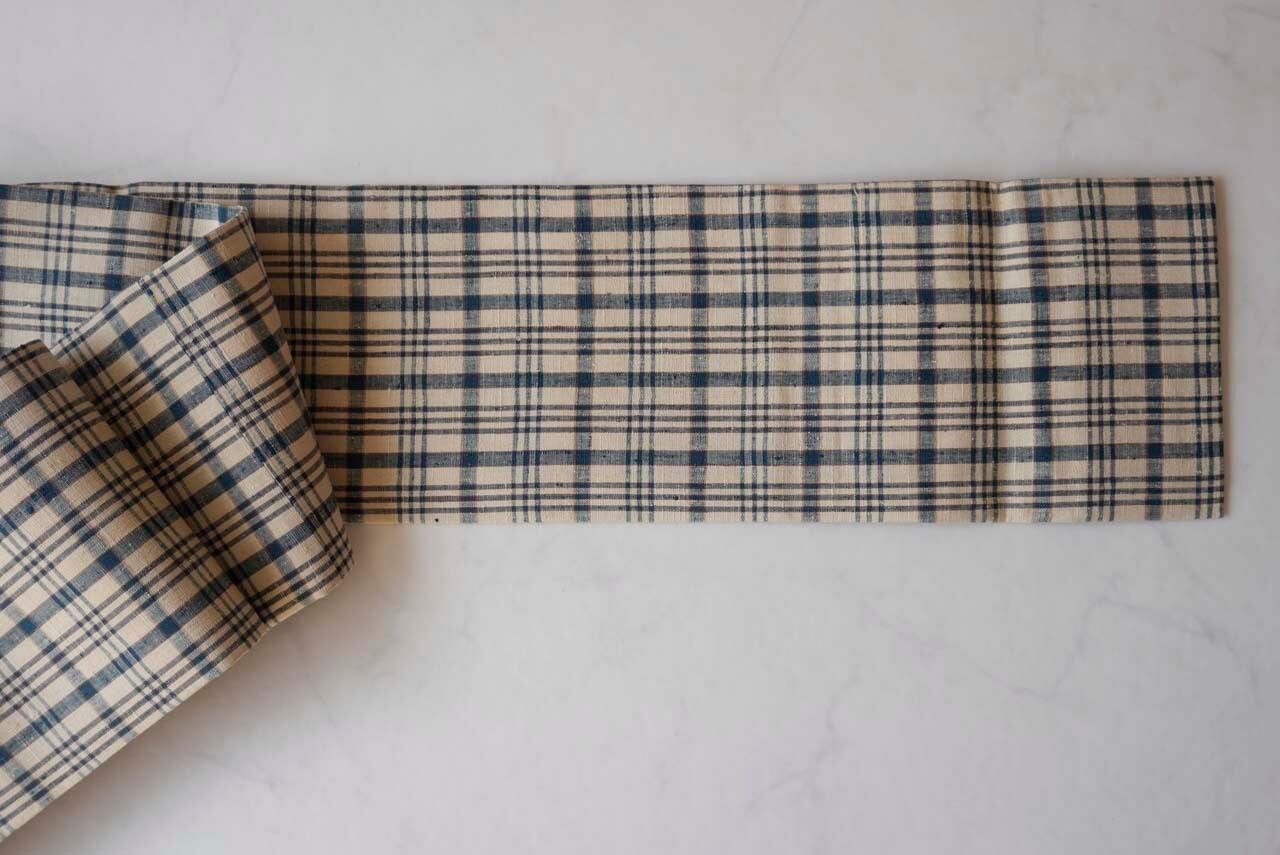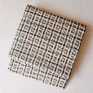 【なごや帯】砂色地 格子文様 紬地なごや帯 お仕立て品