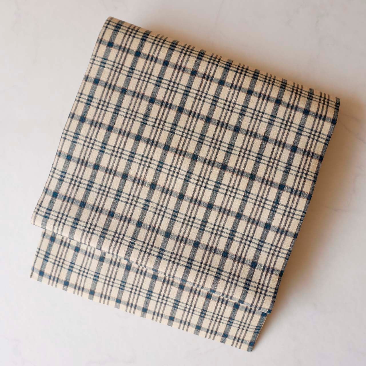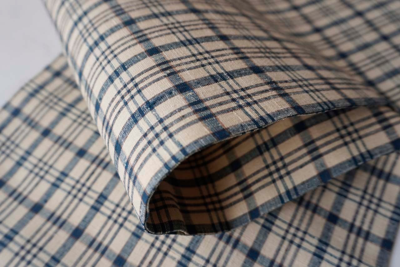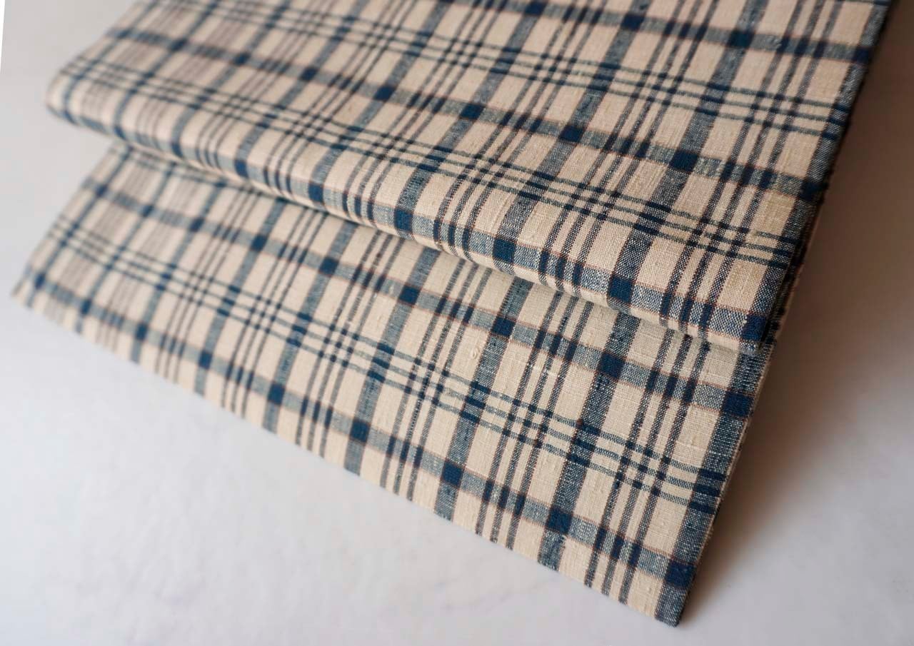 砂色の地色に藍色、焦げ茶色の配色の