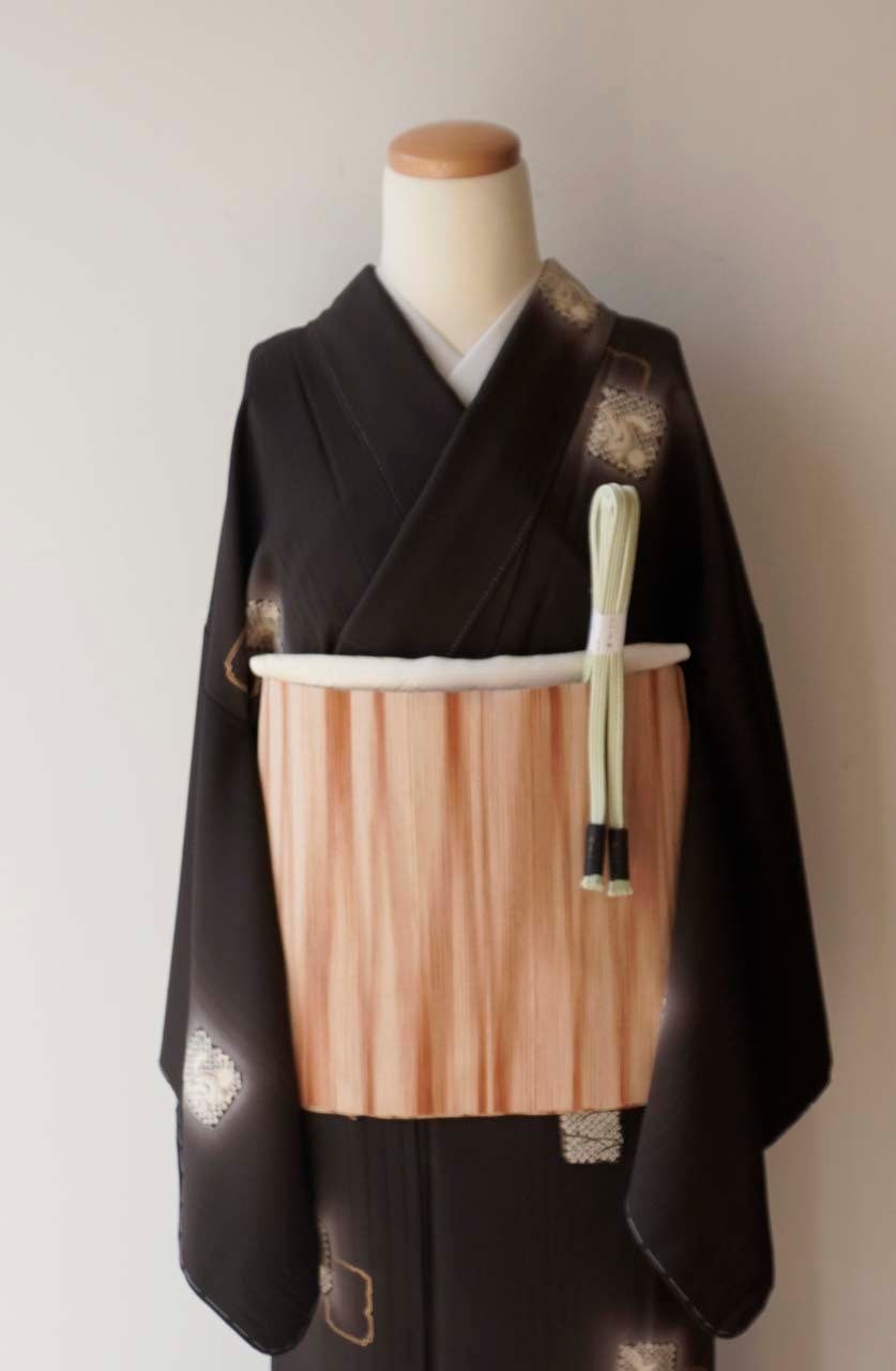 【なごや帯】洗柿地 縞文 かがり八寸 綴れなごや帯