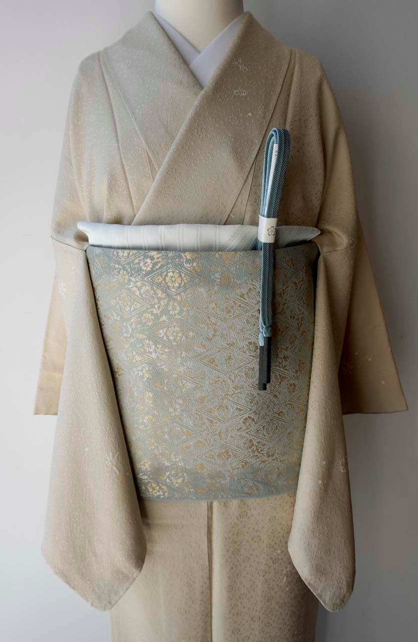 【ふくろ帯】織楽浅野 千草色地 花唐草菱文 ふくろ帯