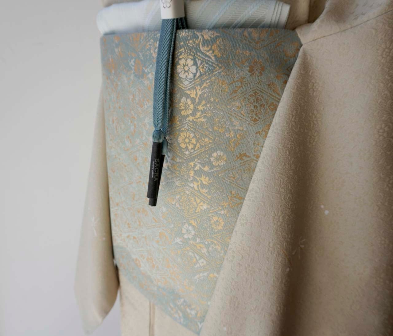 金糸とシャンパンカラーの糸で織り出された