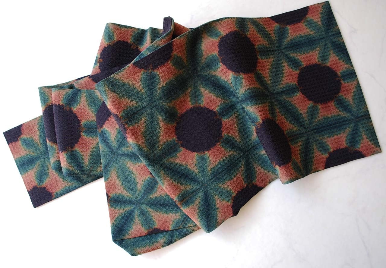 板締め絞りという技法の「雪花絞り」。