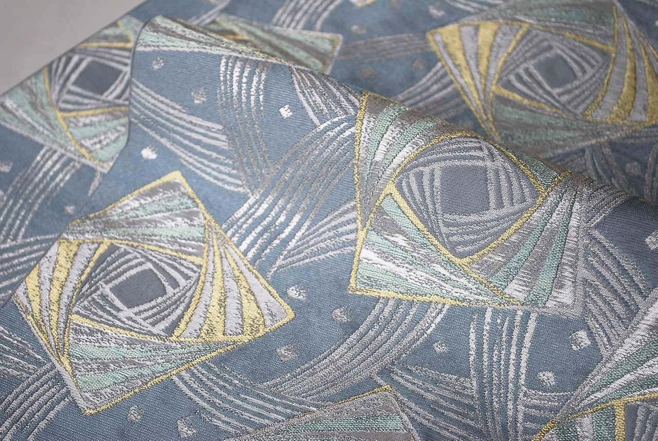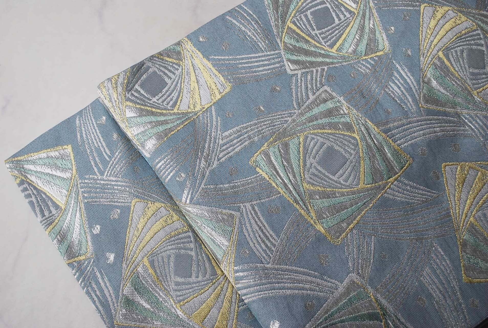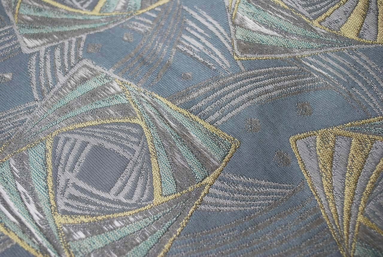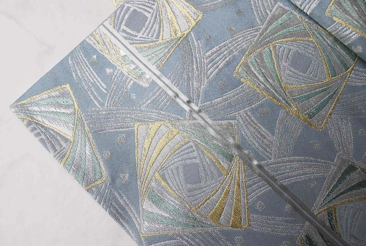 繊細な地銀通しが施された灰青の地は