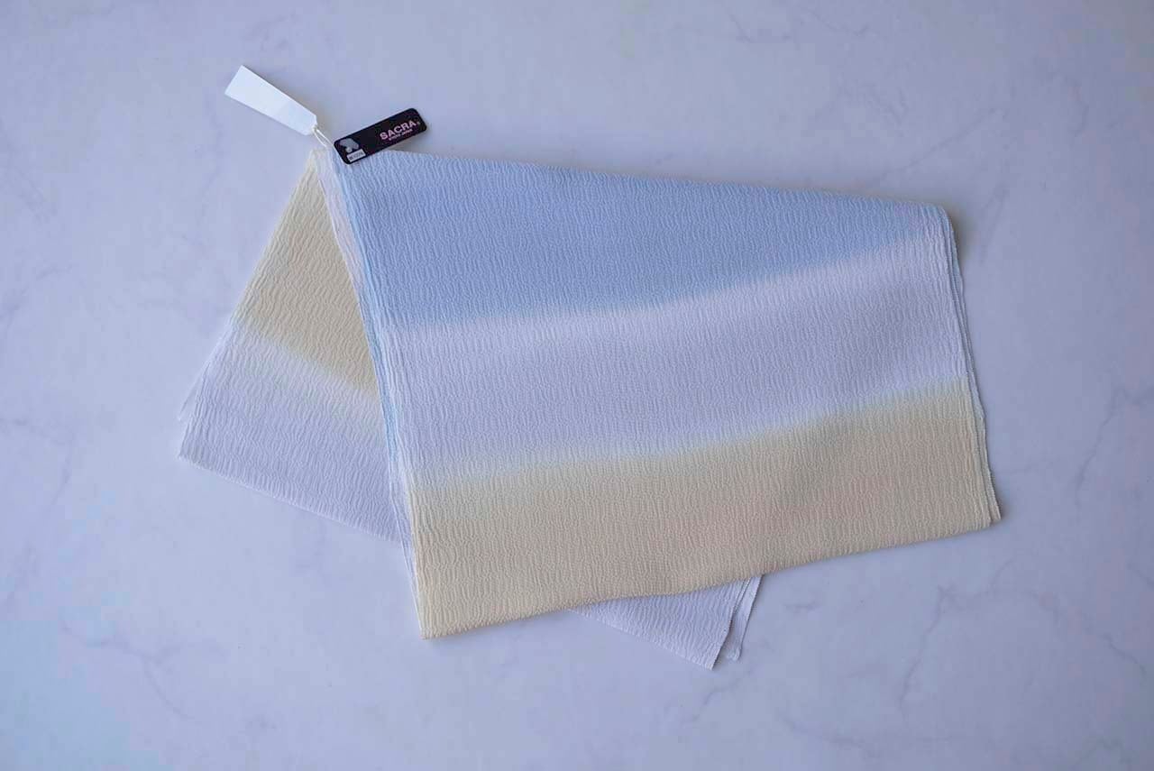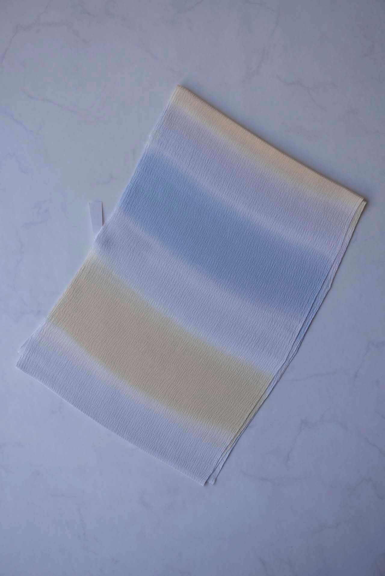 【和小物さくら・帯揚げ】空色×白菫色 ×淡黄 うずら縮緬 三色横段暈し 帯揚げ 260205⑯