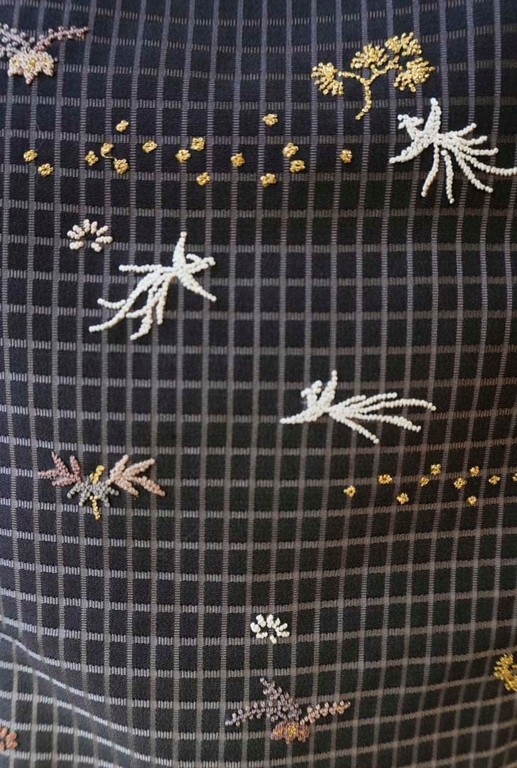 表情のある格子の織地に、ビーズ刺繍のような