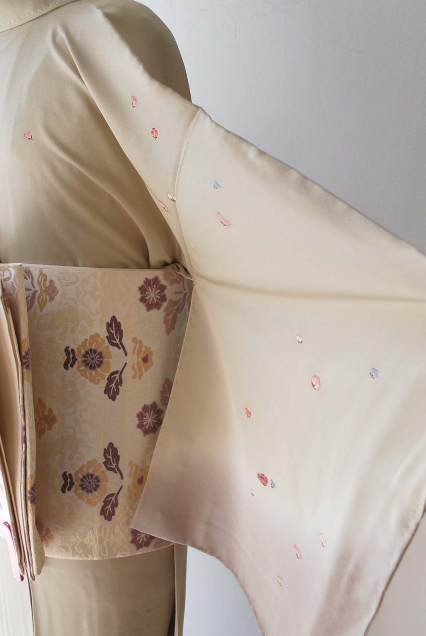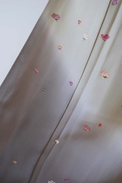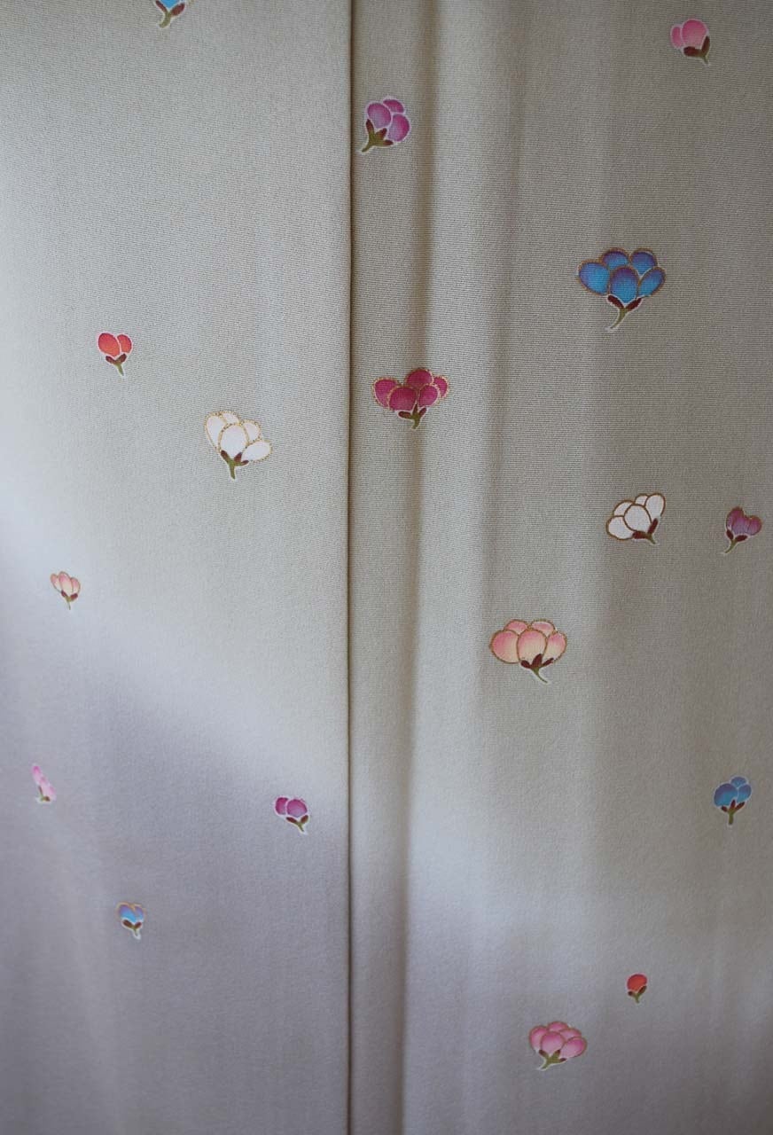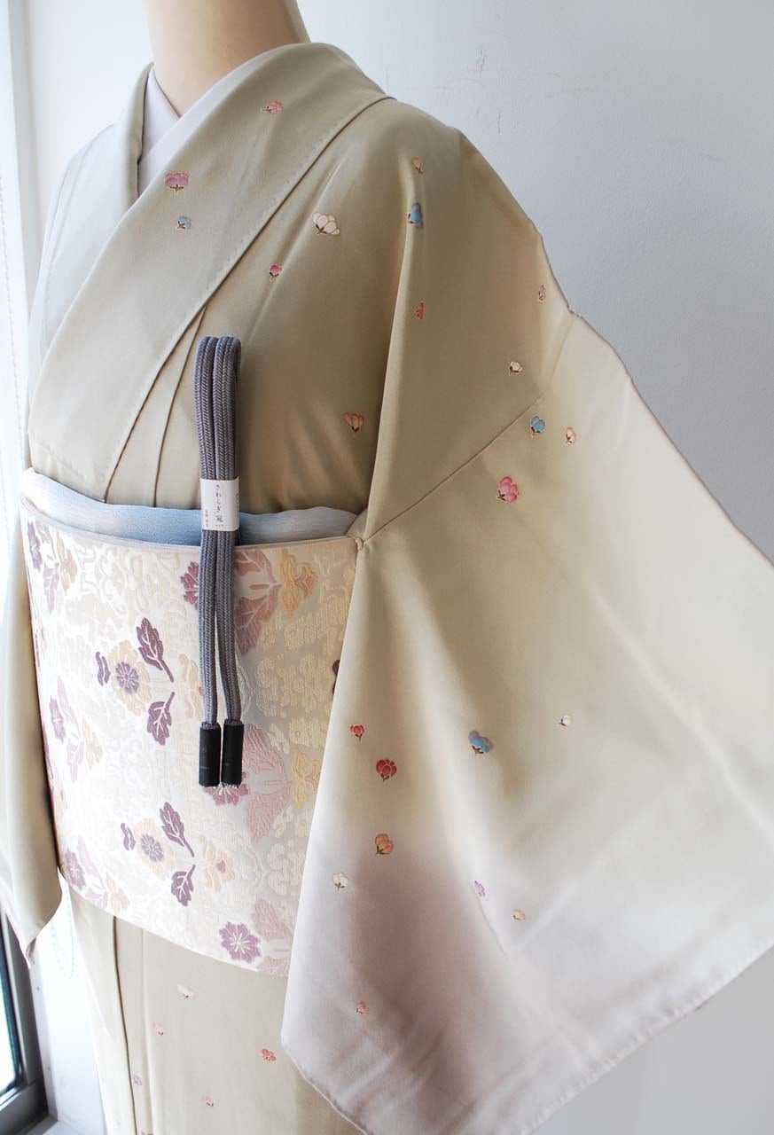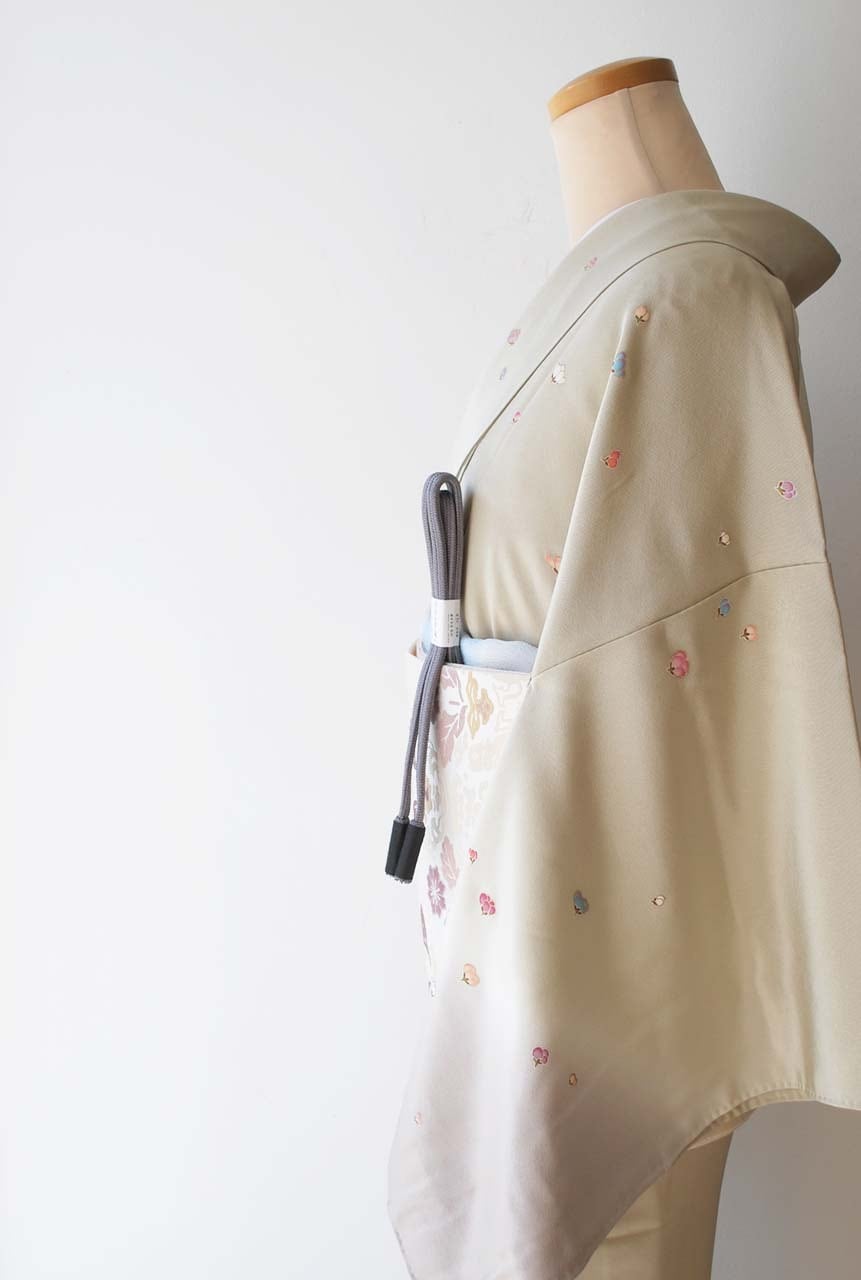 【袷】薄柳色×茶鼠色 裾暈かし 小花柄 訪問着