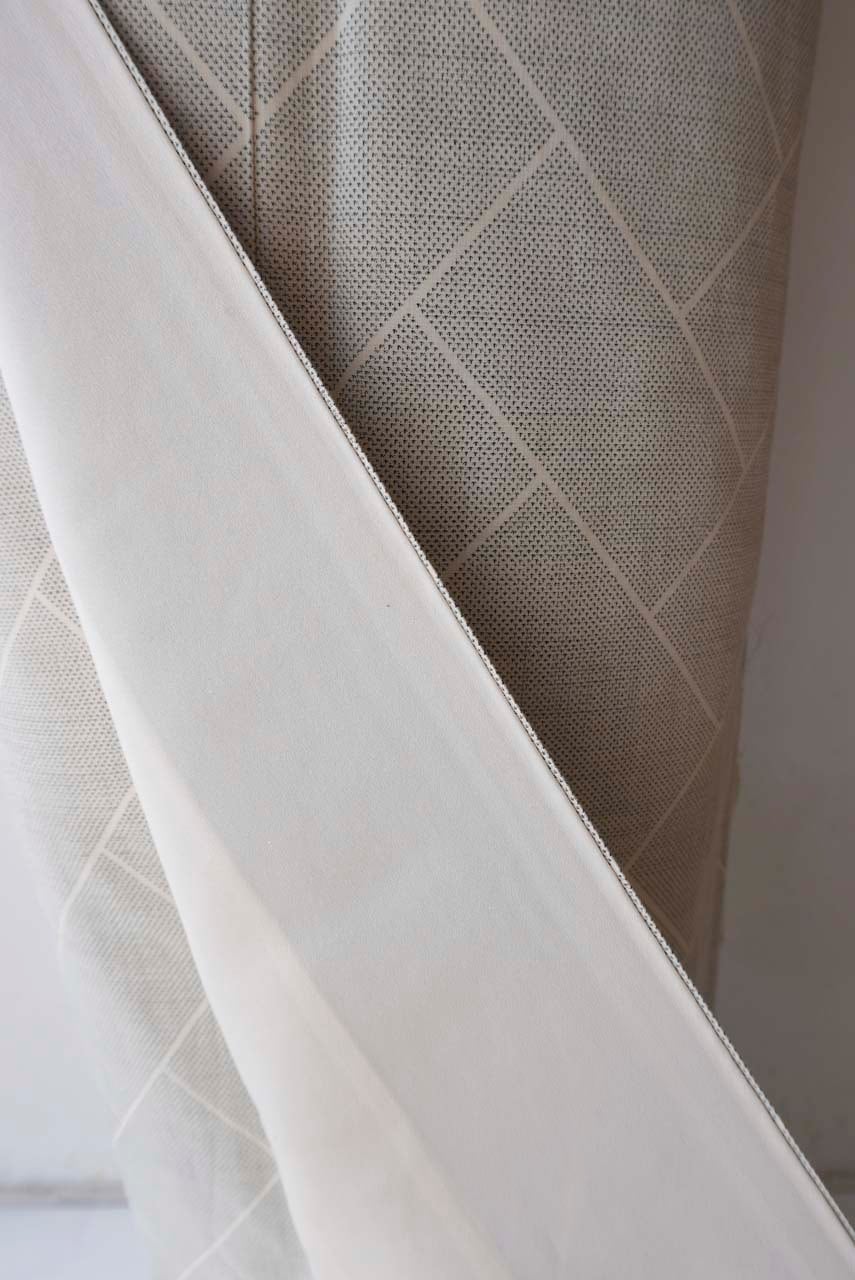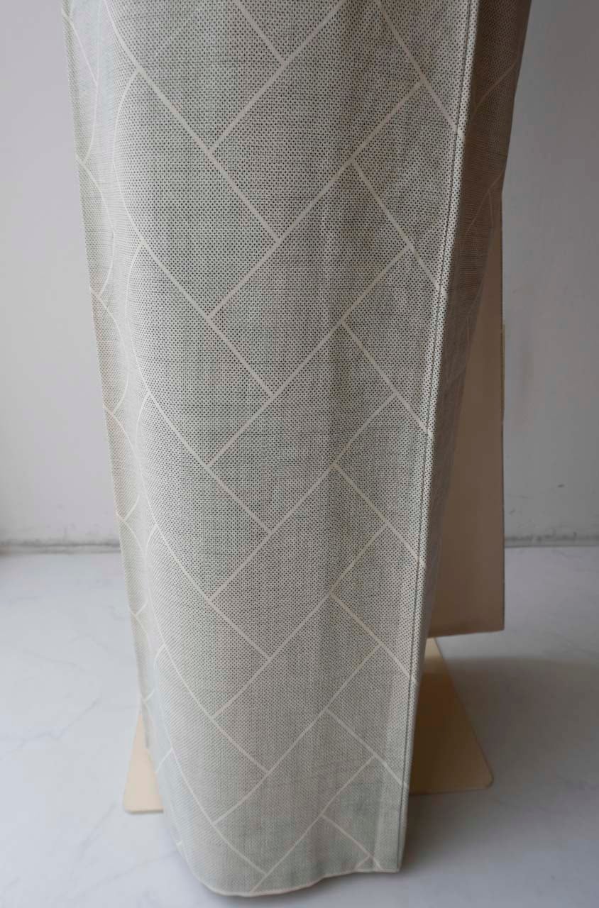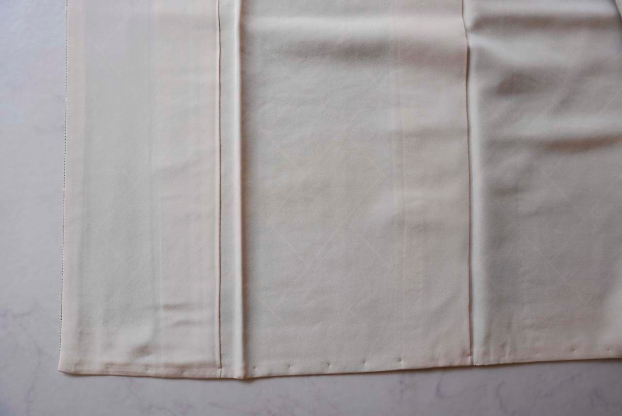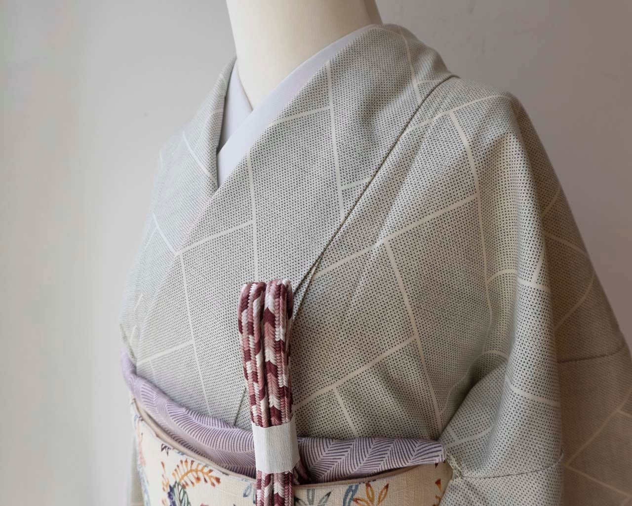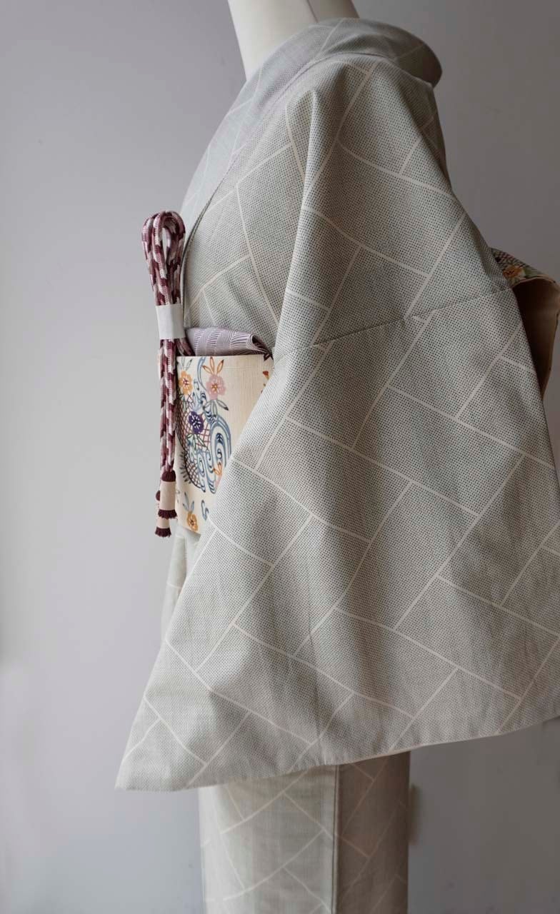 練色地の緻密な平織地に、端正な桧垣文様が