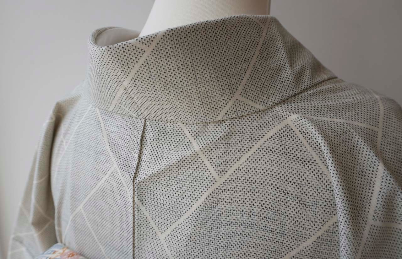 【袷】練色地 桧垣文 綿薩摩 プチサイズ