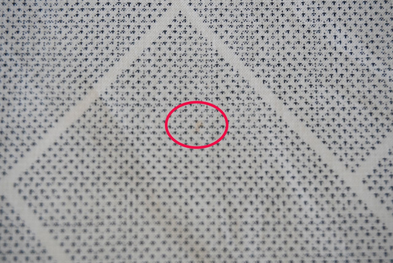 細やかな蚊絣で大きな桧垣文が