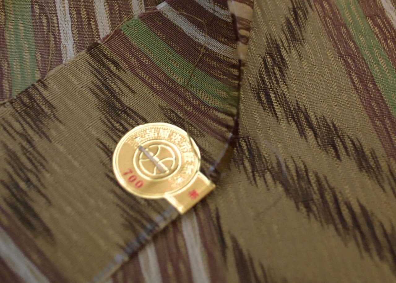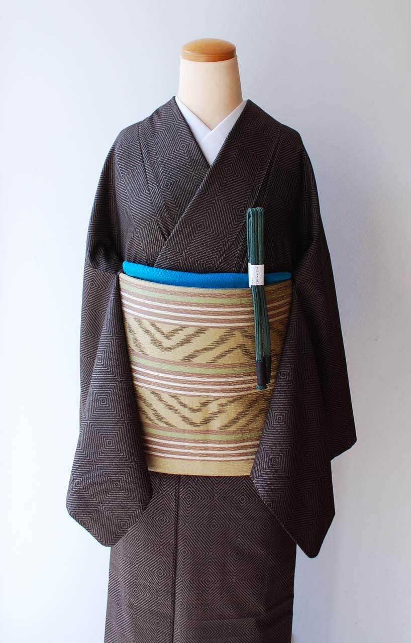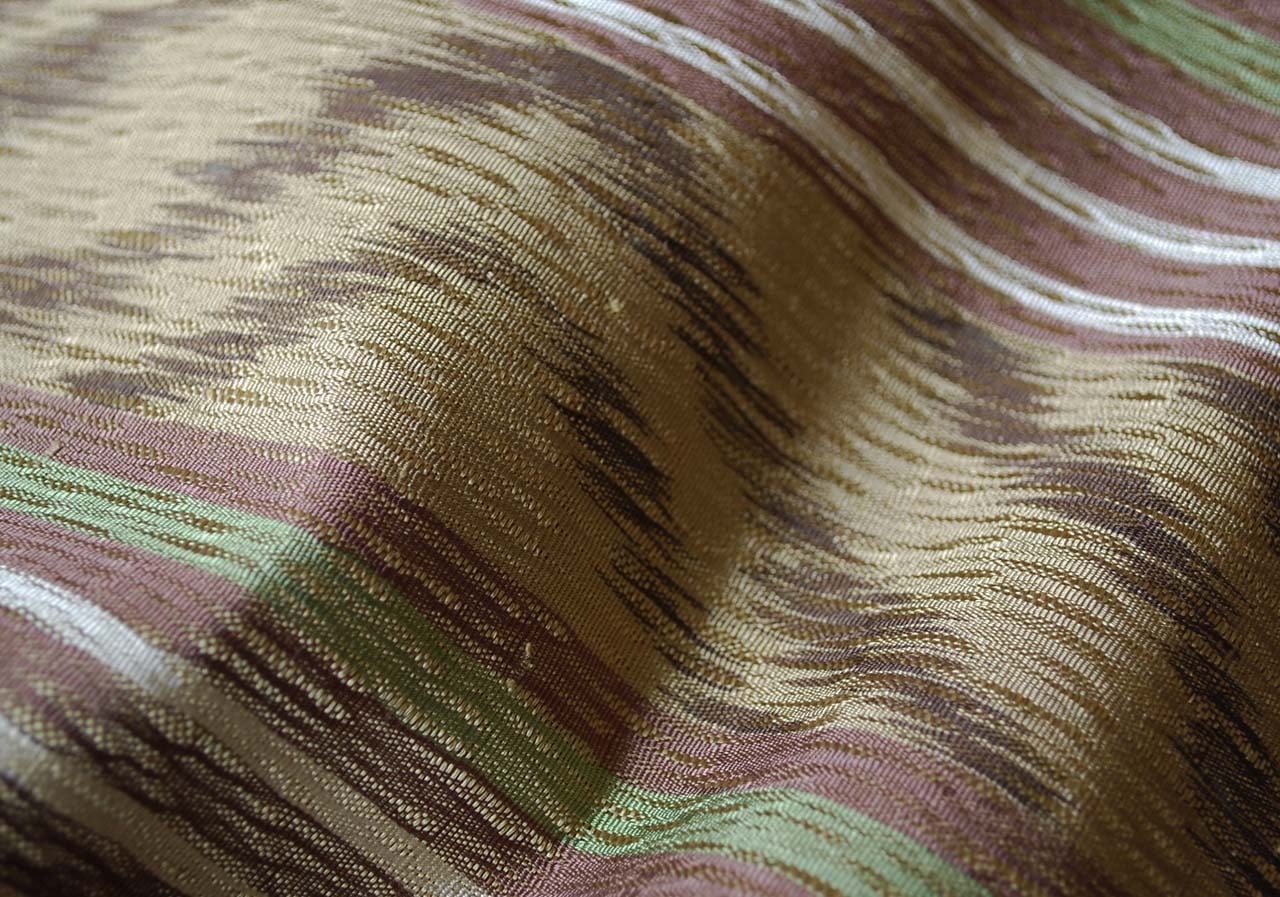 油色系献上絣文、全通すくい織りの