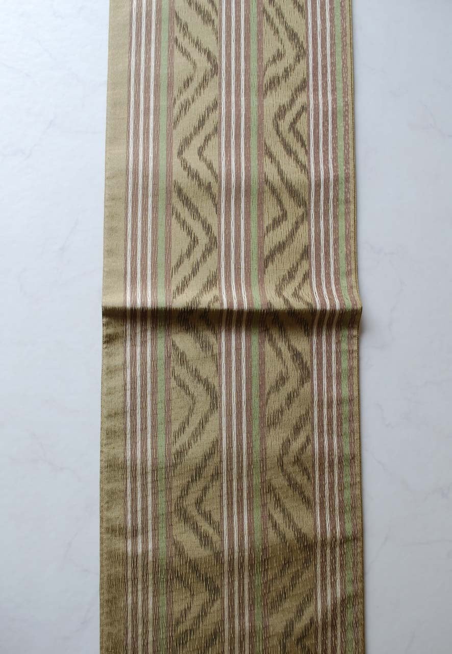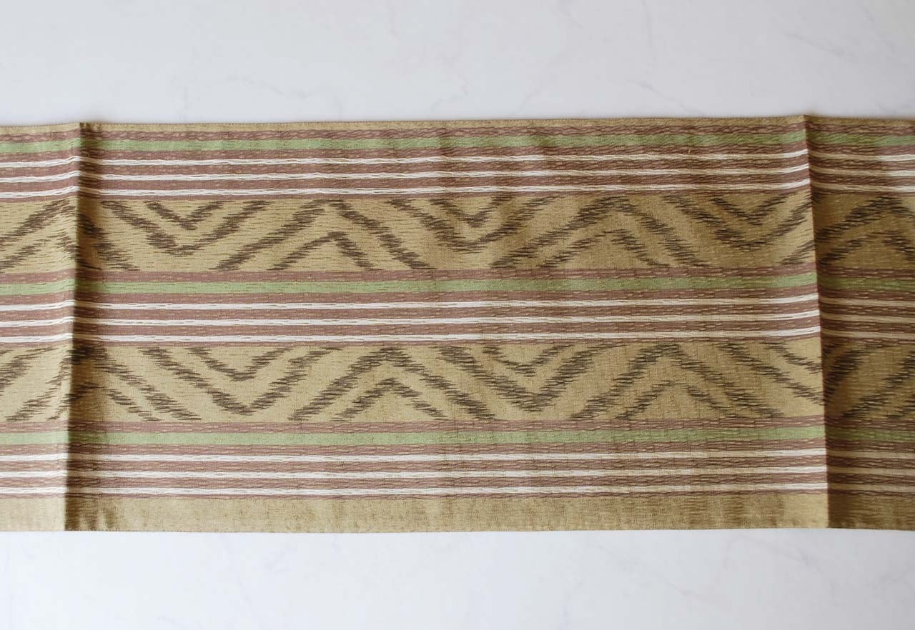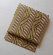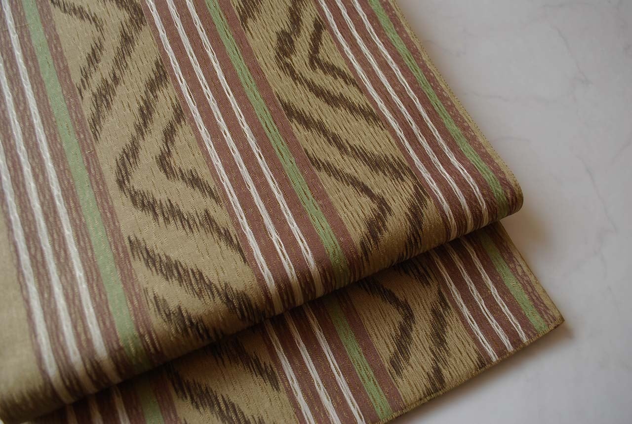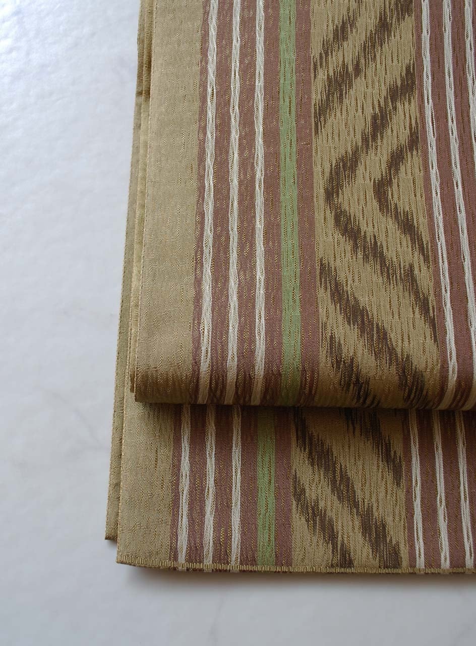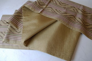 【ふくろ帯】まこと織物 油色系 献上絣文 全通すくい織り 手織りふくろ帯