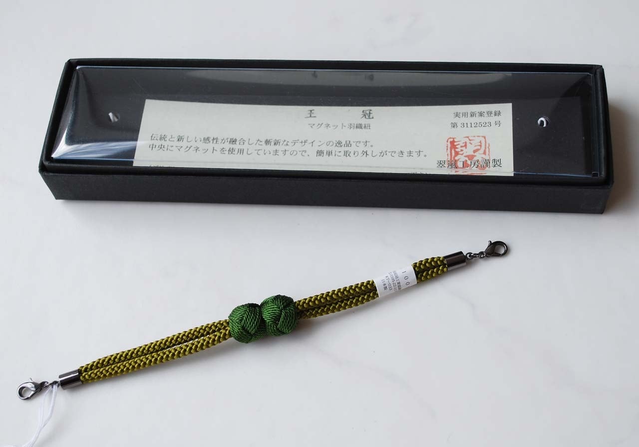 【羽織紐】マグネット式羽織紐 鶯色紐×鉄色小田巻き No.250912③