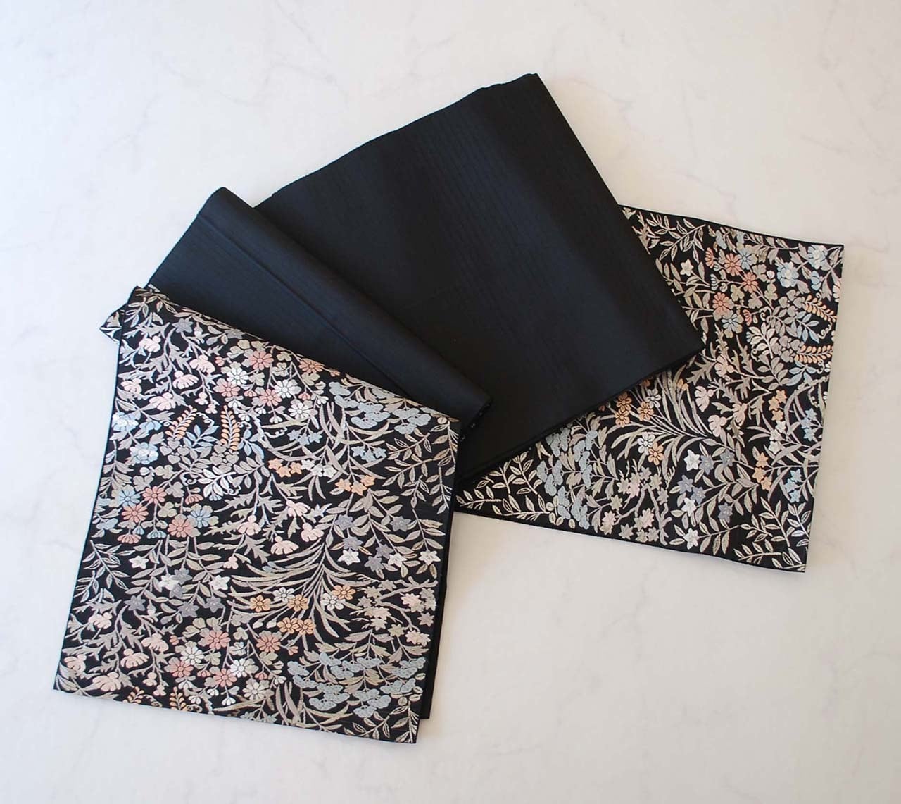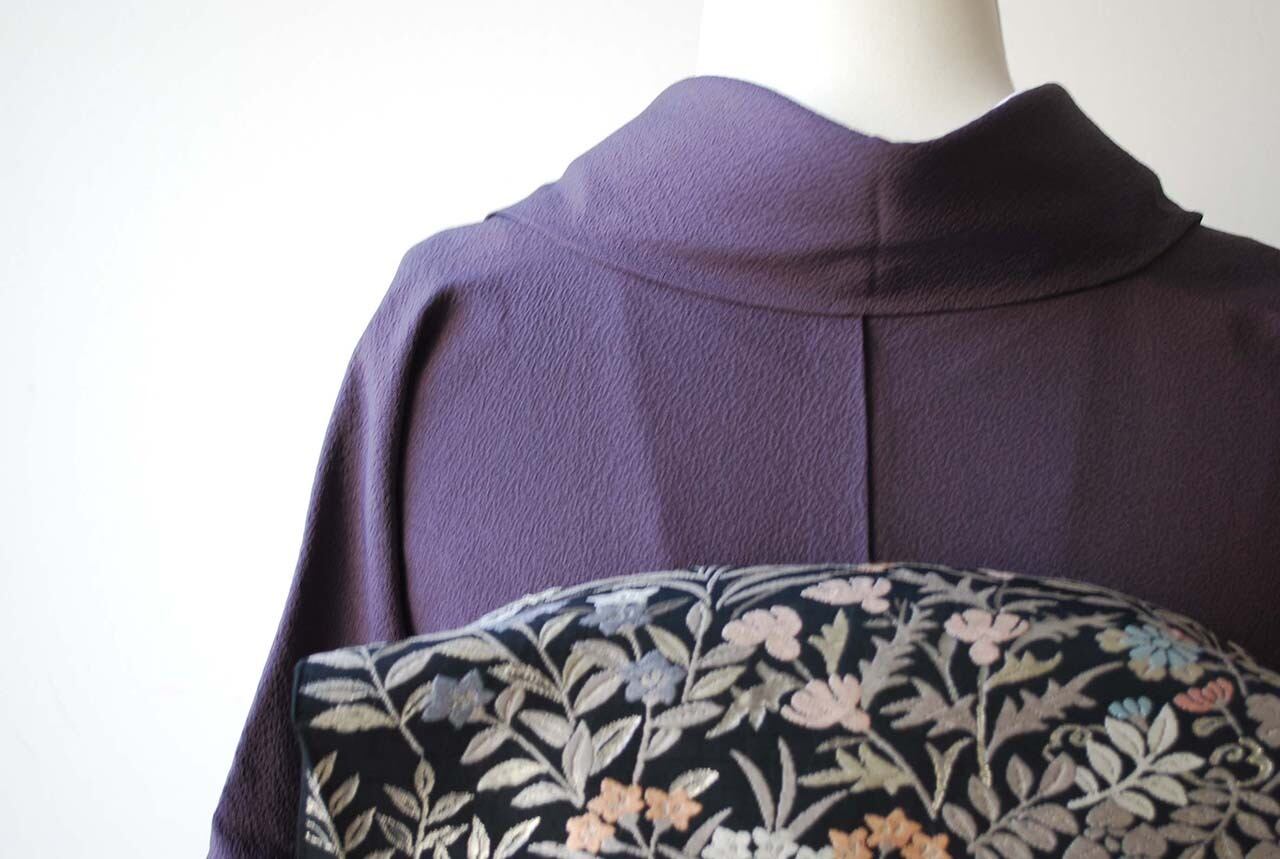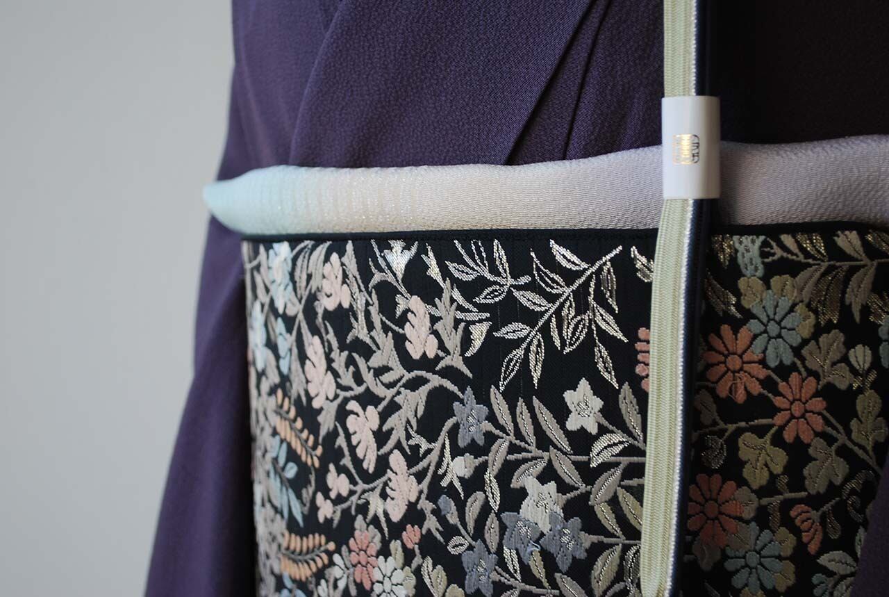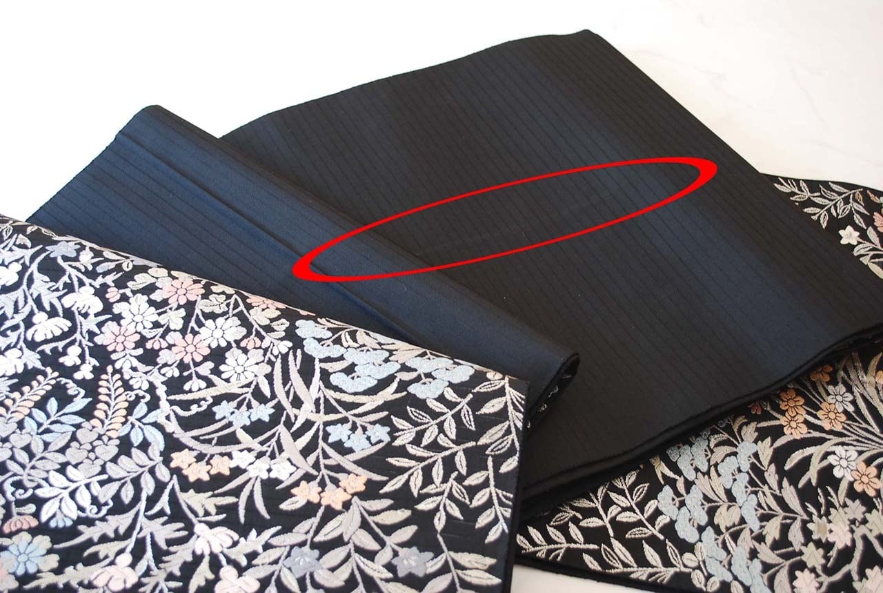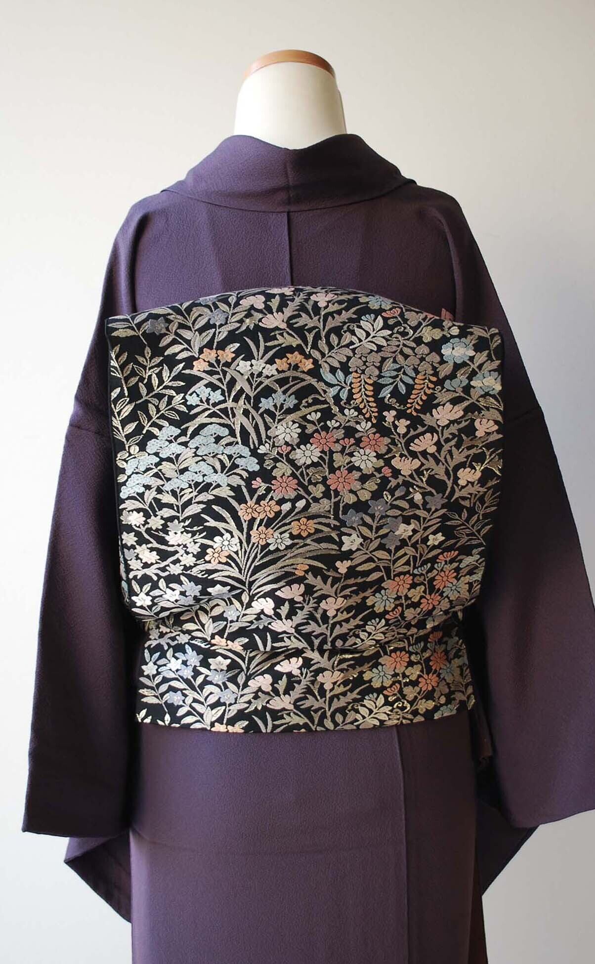 青々庵・服部織物の黒地に唐織が映える袋帯です。