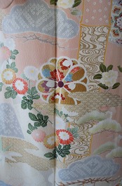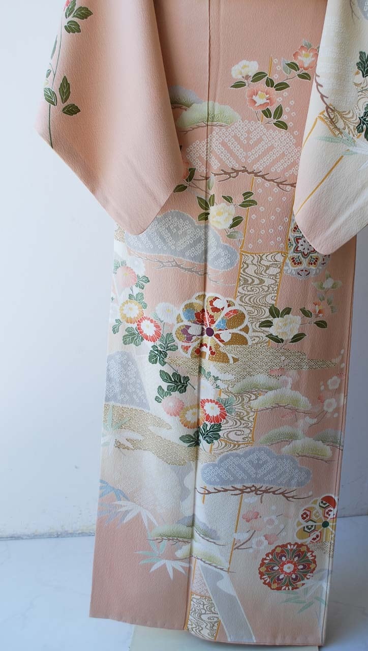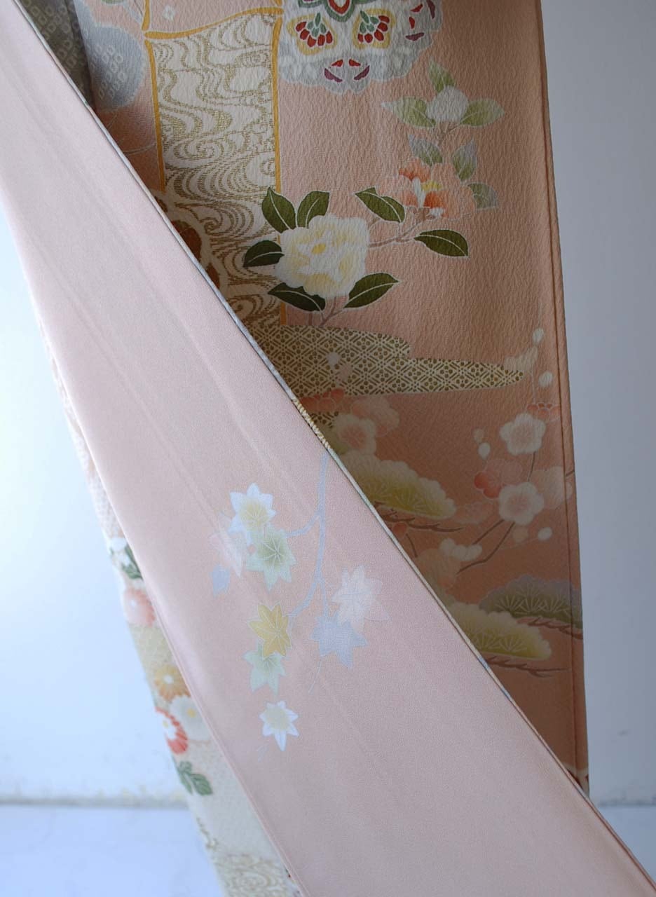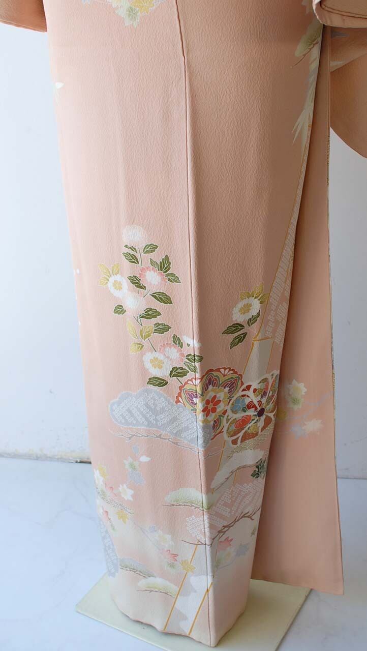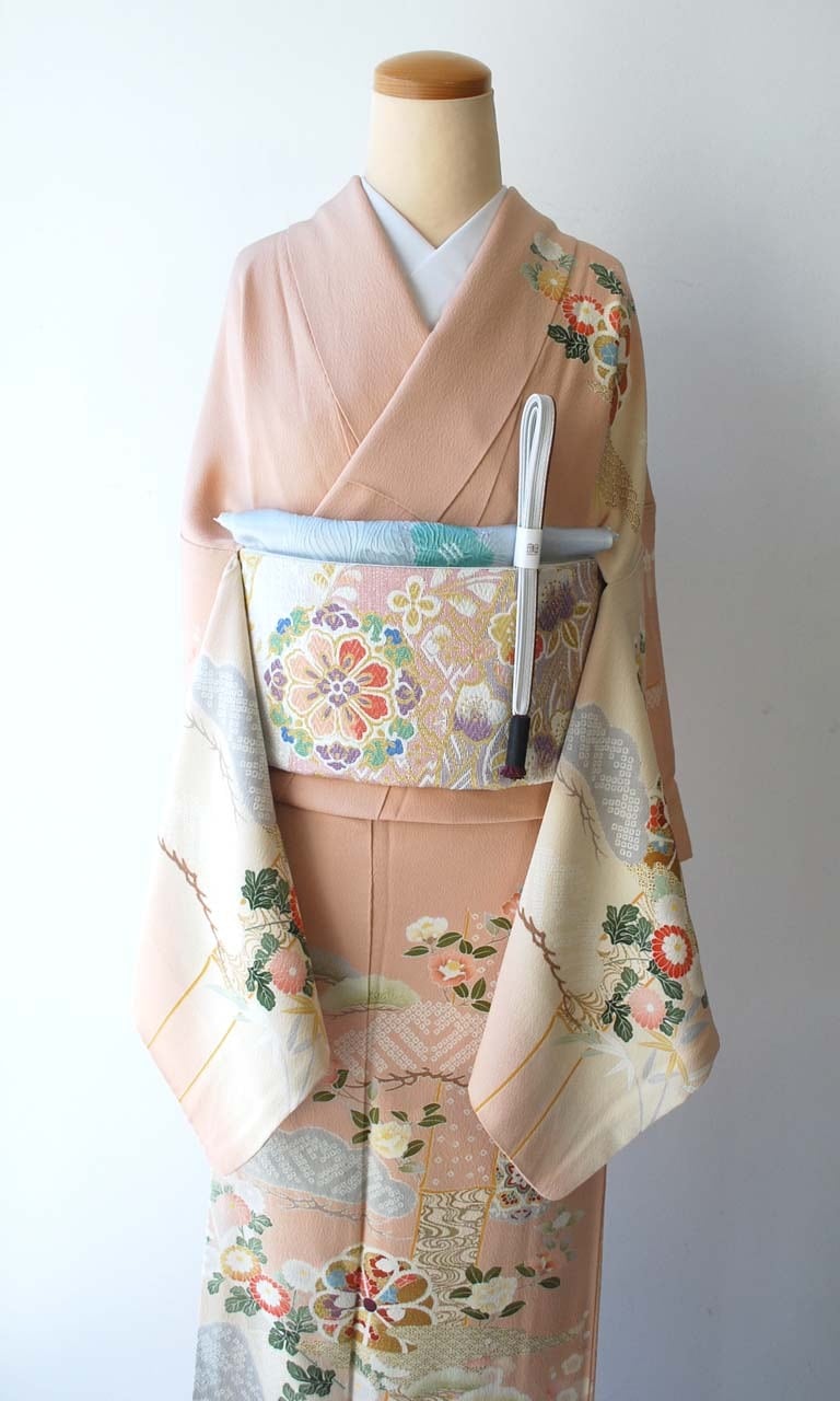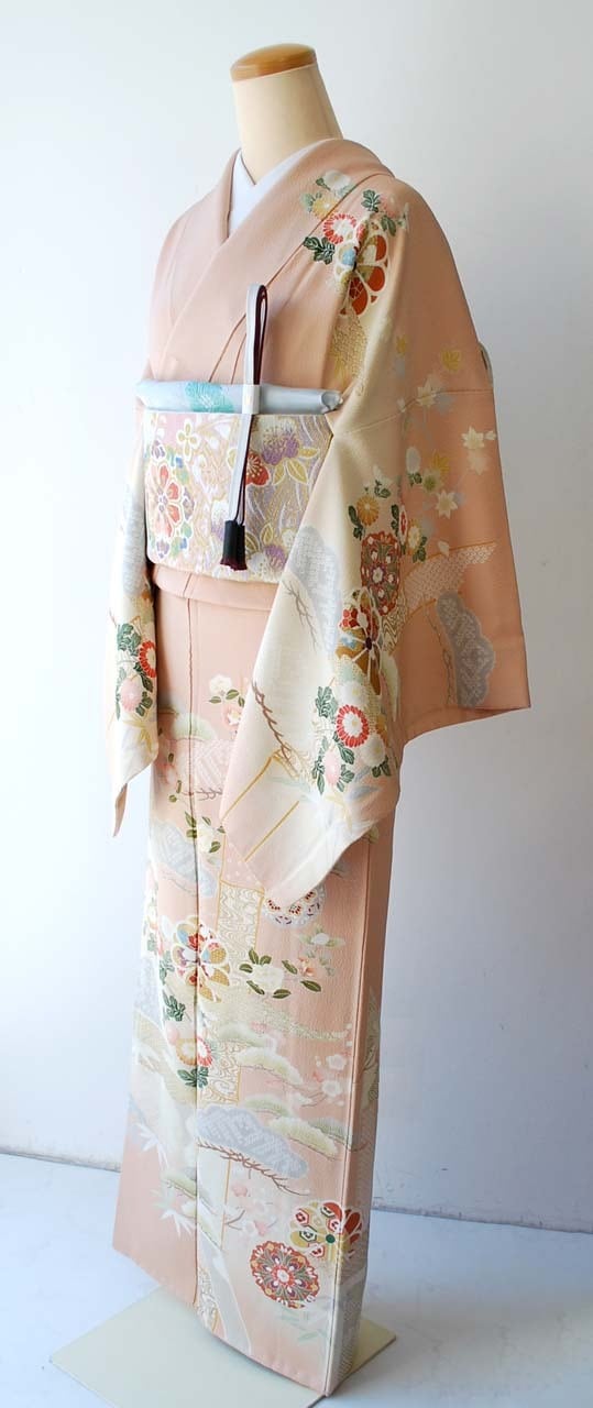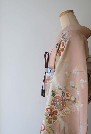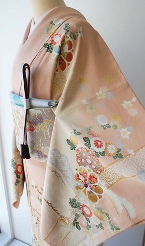 乙女色に吉祥花文の訪問着です。