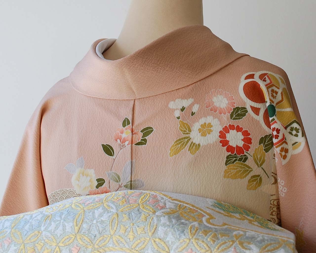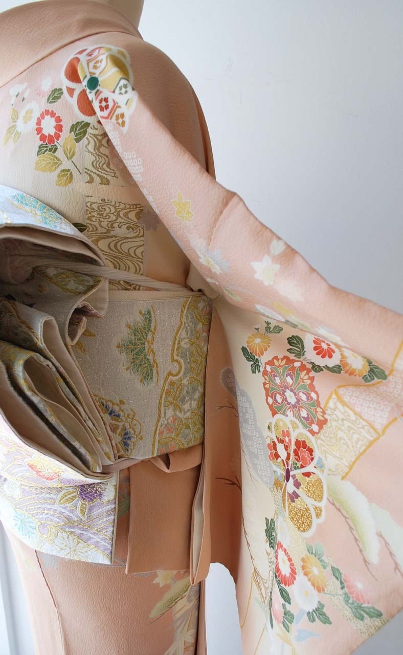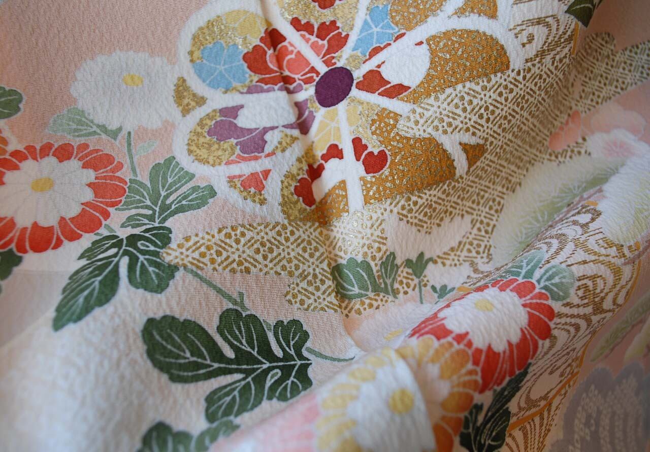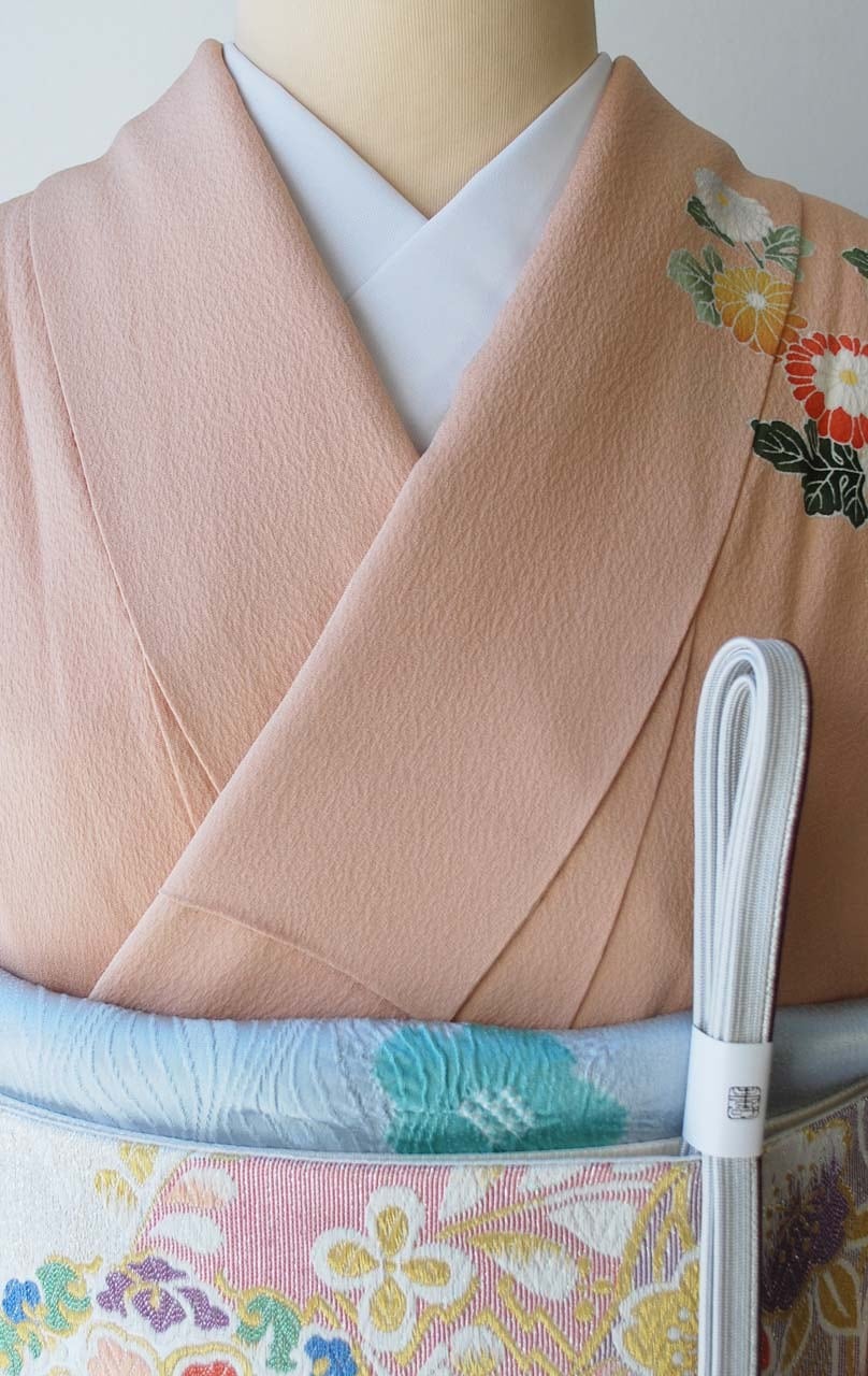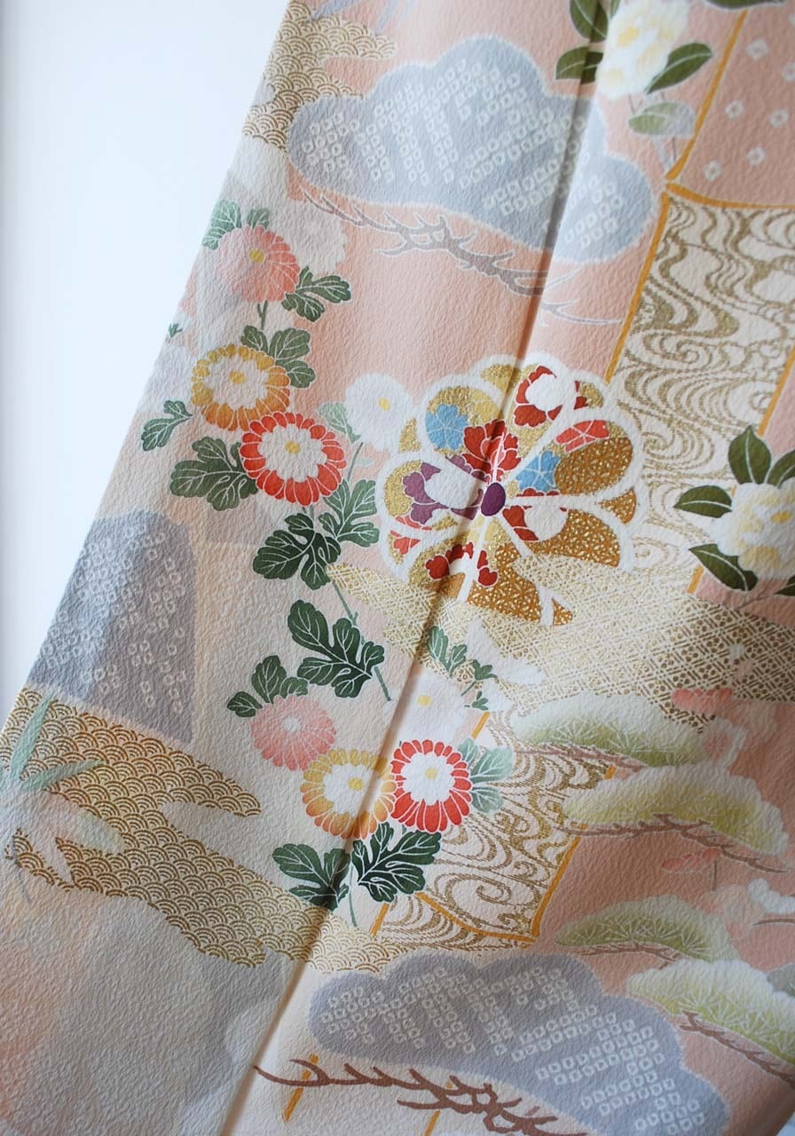 乙女色に吉祥花文の訪問着です。