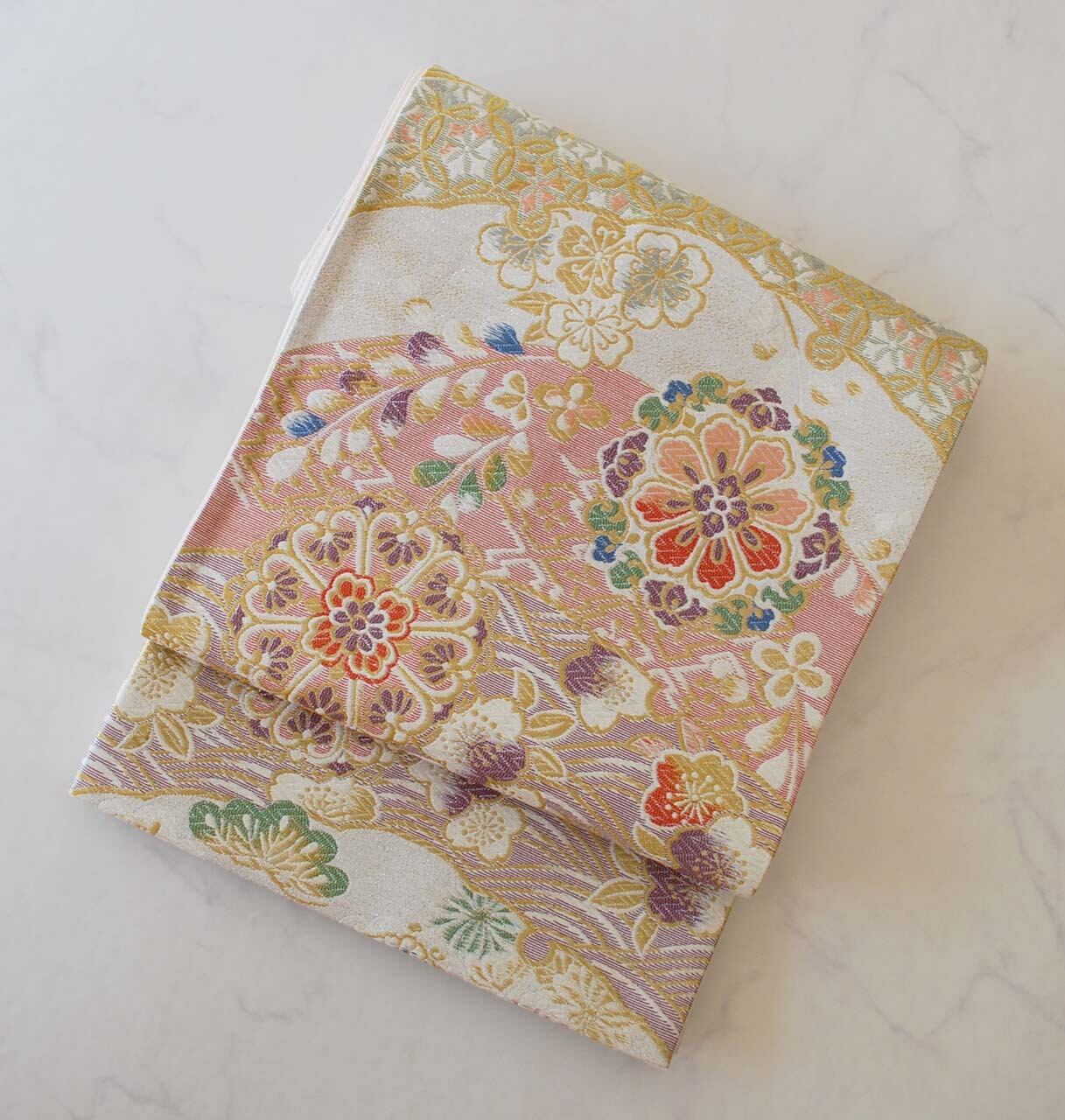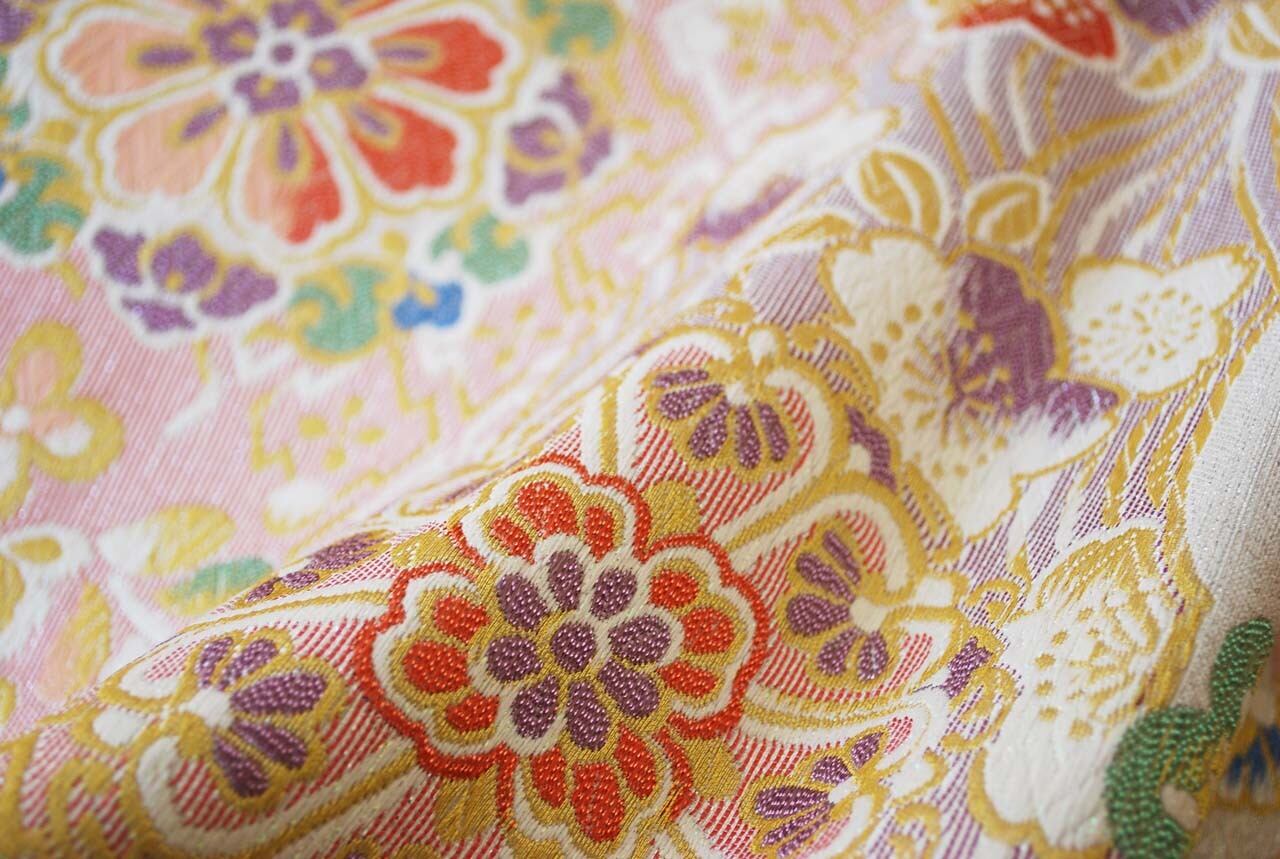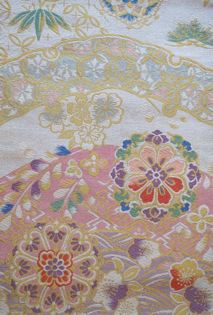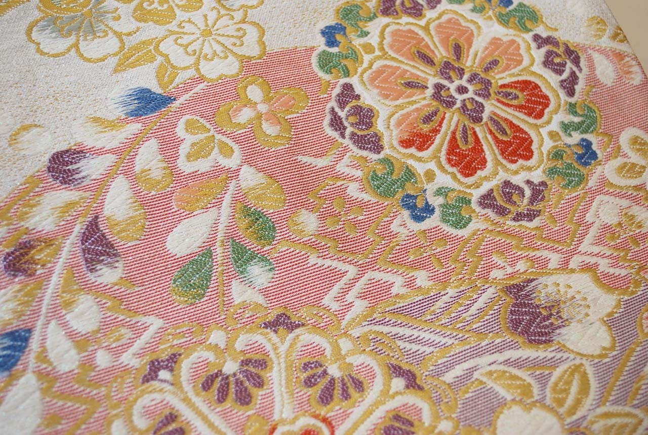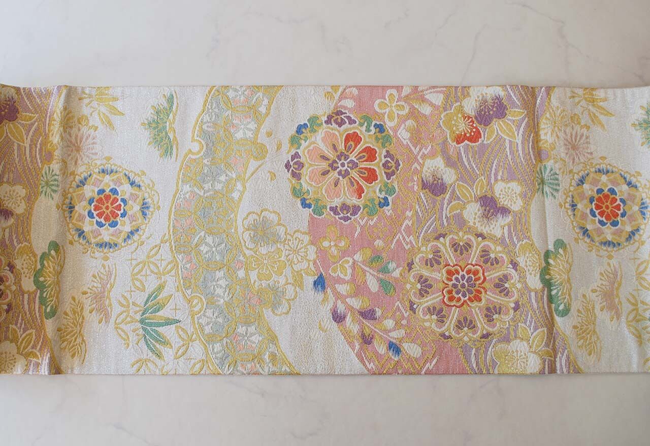 【ふくろ帯】西陣 白銀地 華彩更紗 ふくろ帯