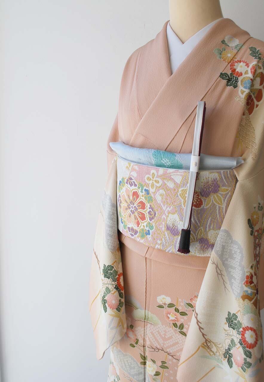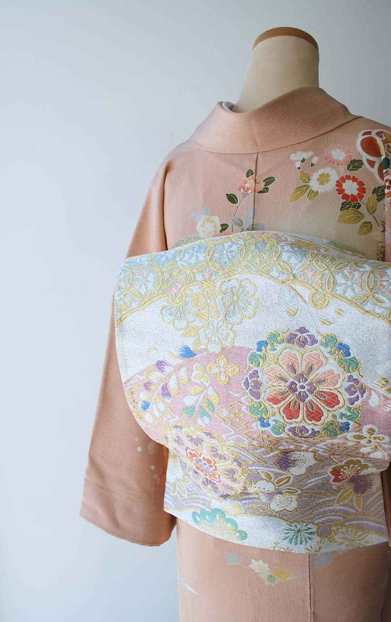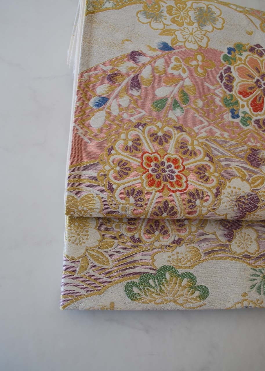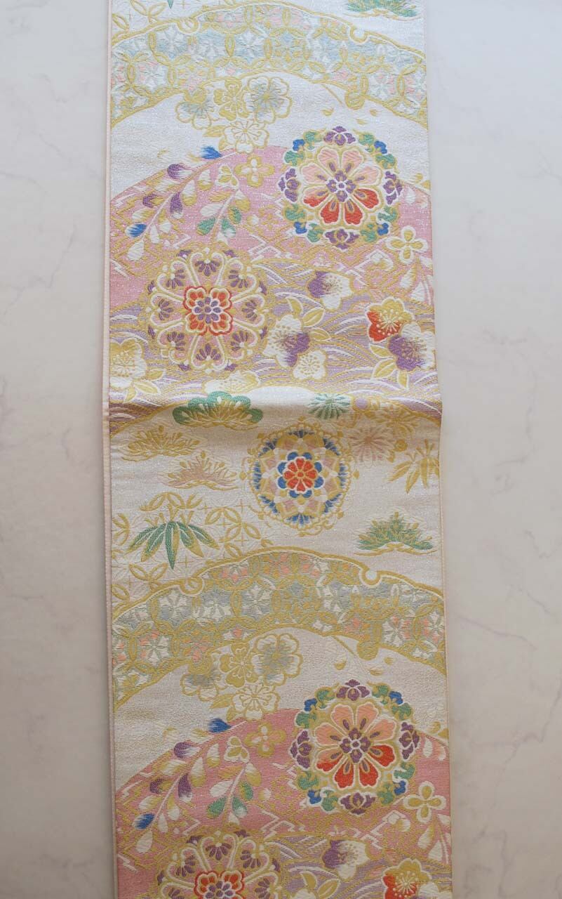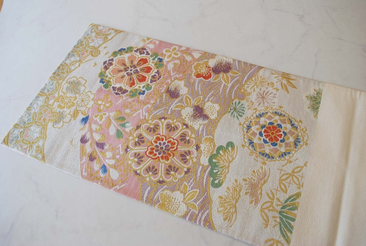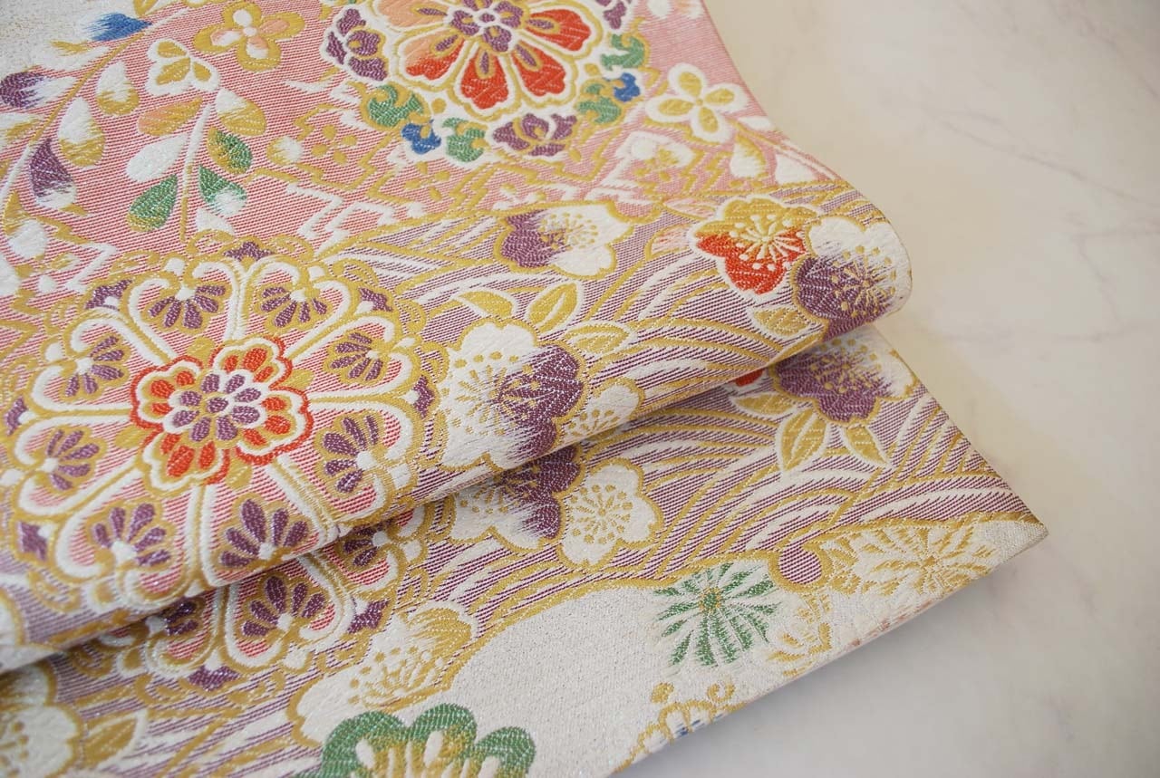 【ふくろ帯】西陣 白銀地 華彩更紗 ふくろ帯