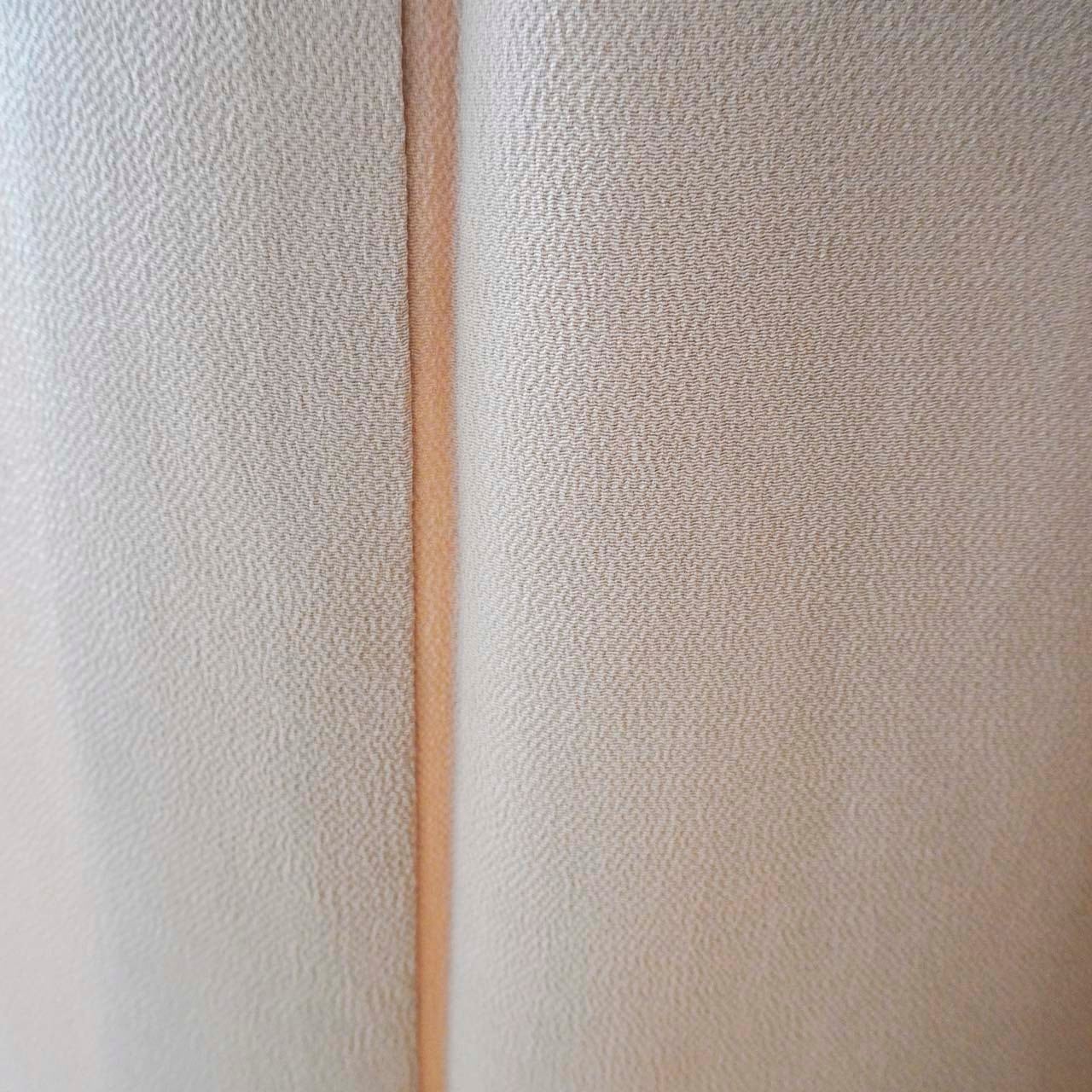【袷】赤白橡色 縮緬地 色無地 一つ紋