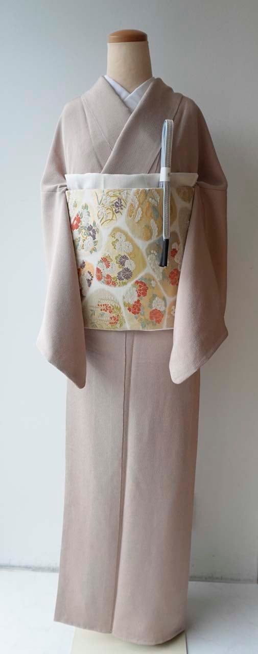 赤白橡色、縮緬地の色無地です。